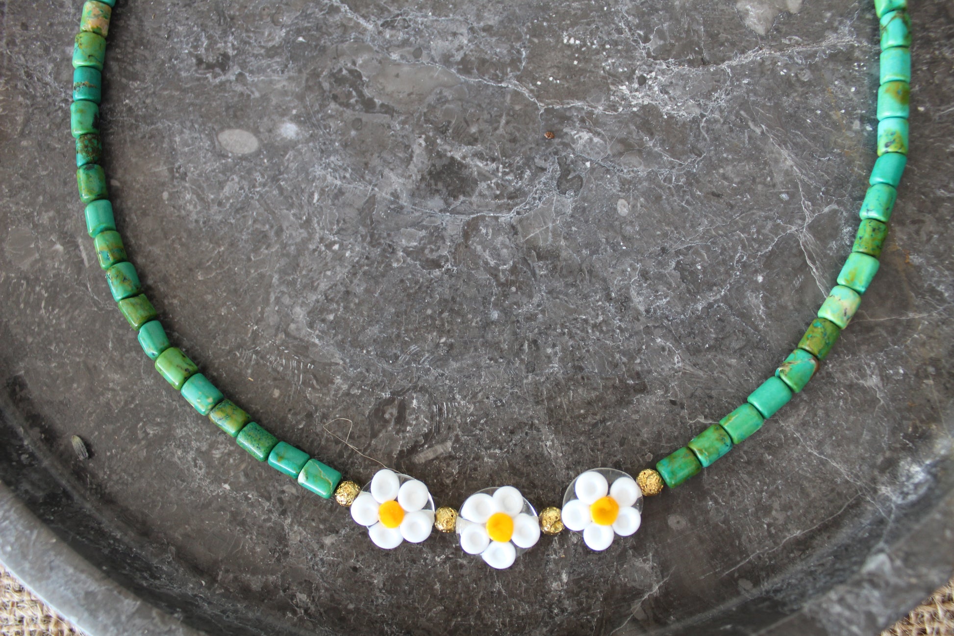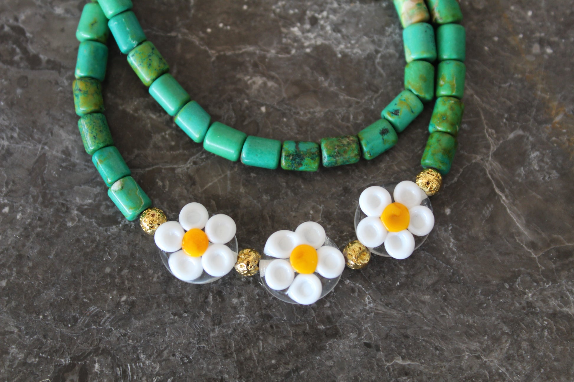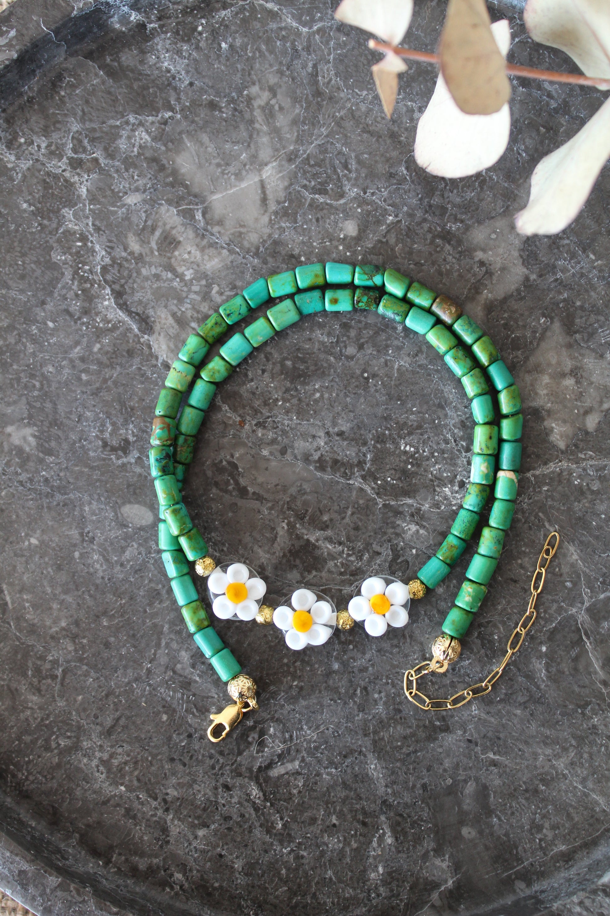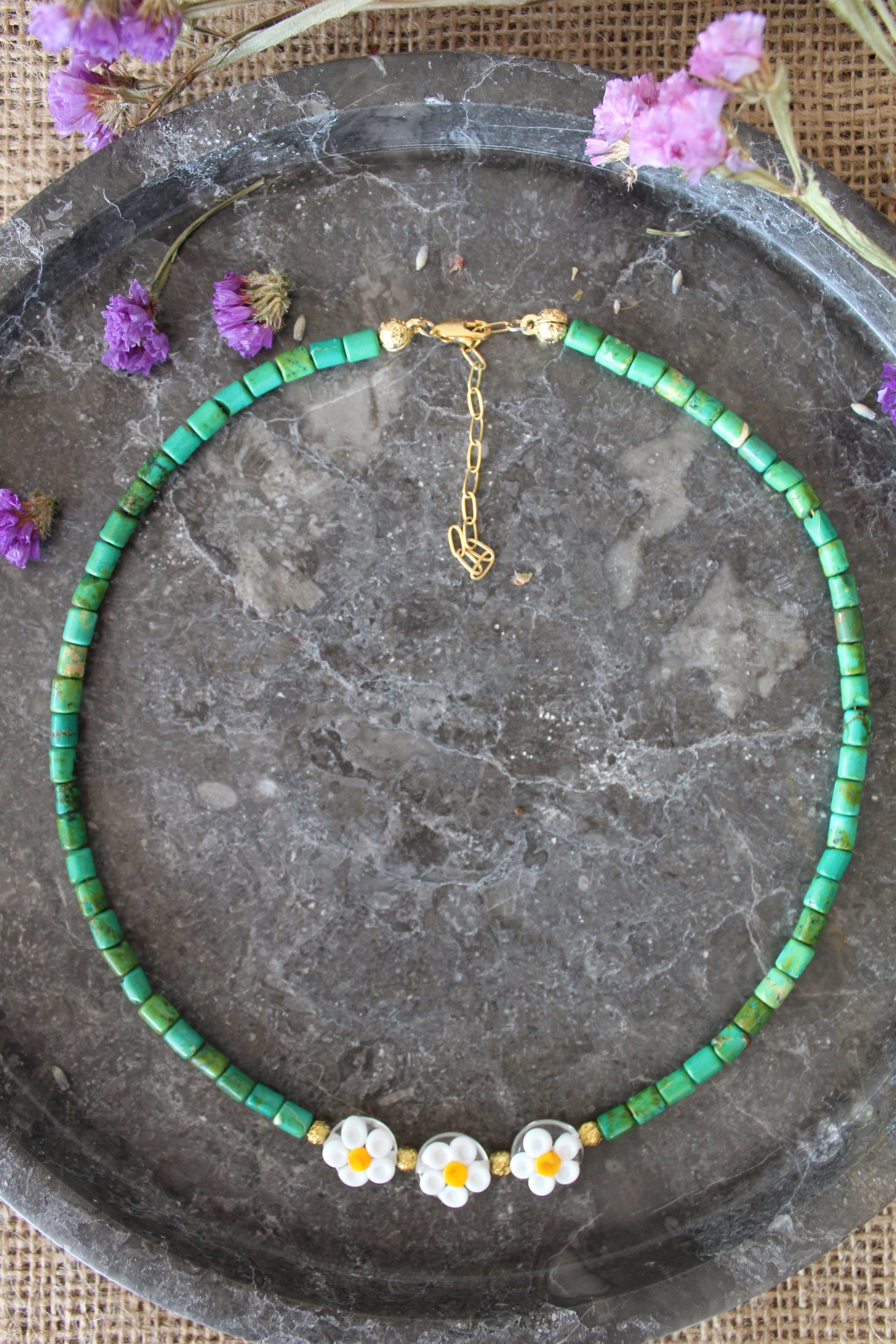 Malzemeler: Afrika Turkuazı, Lav taşı, Papatya Murano, Çelik Aparatlar