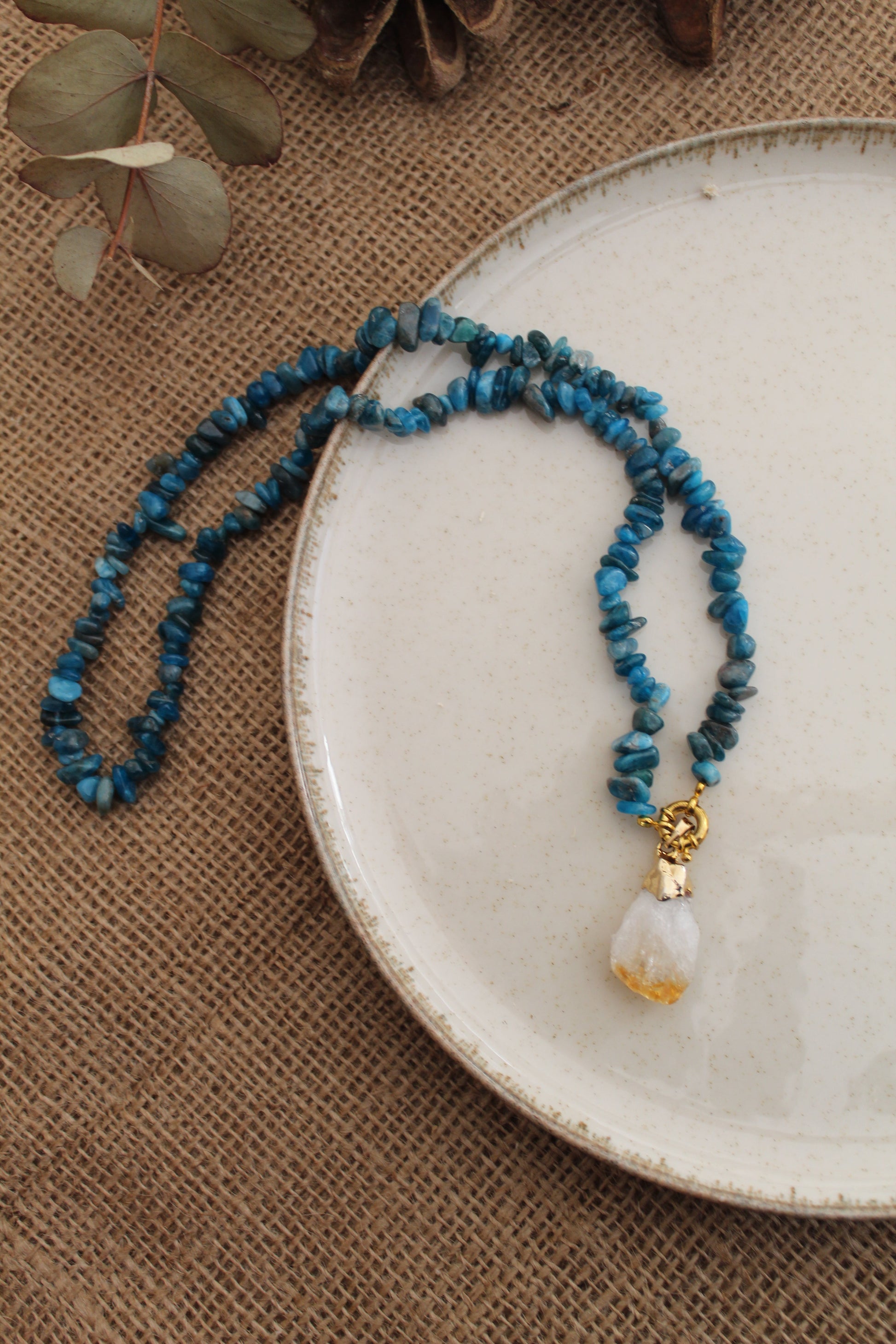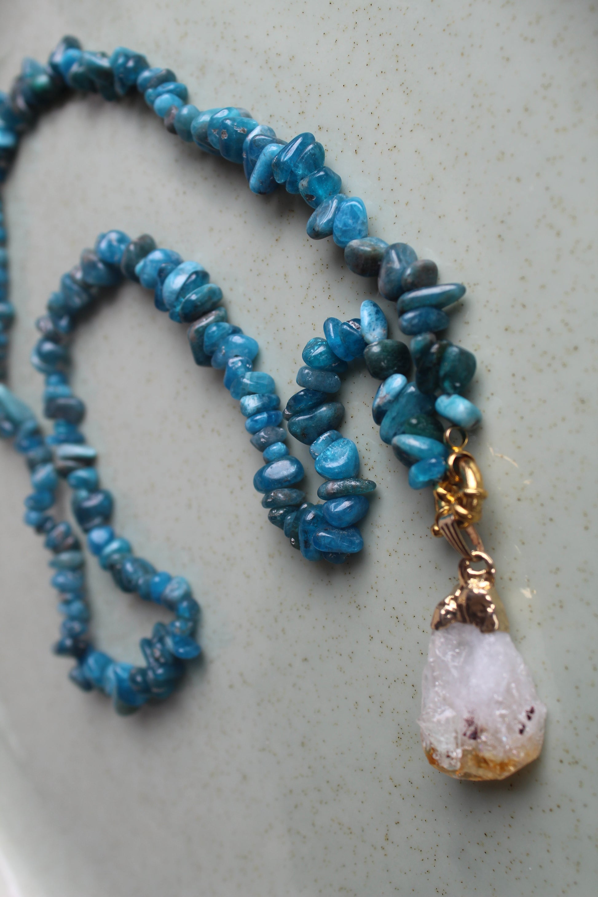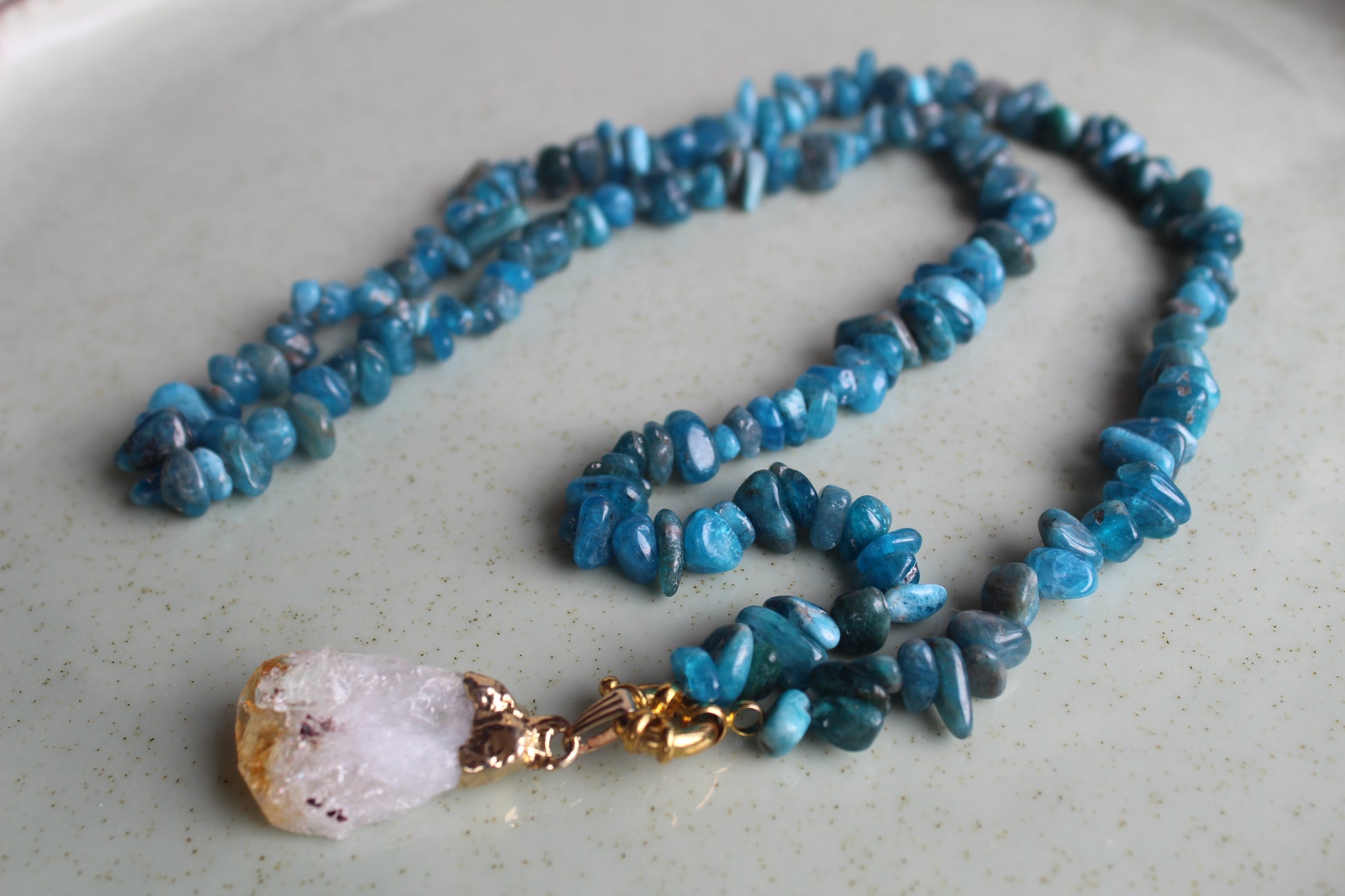 Malzemeler: Apatit, Doğaltaş Kolye ucu, Çelik aparat