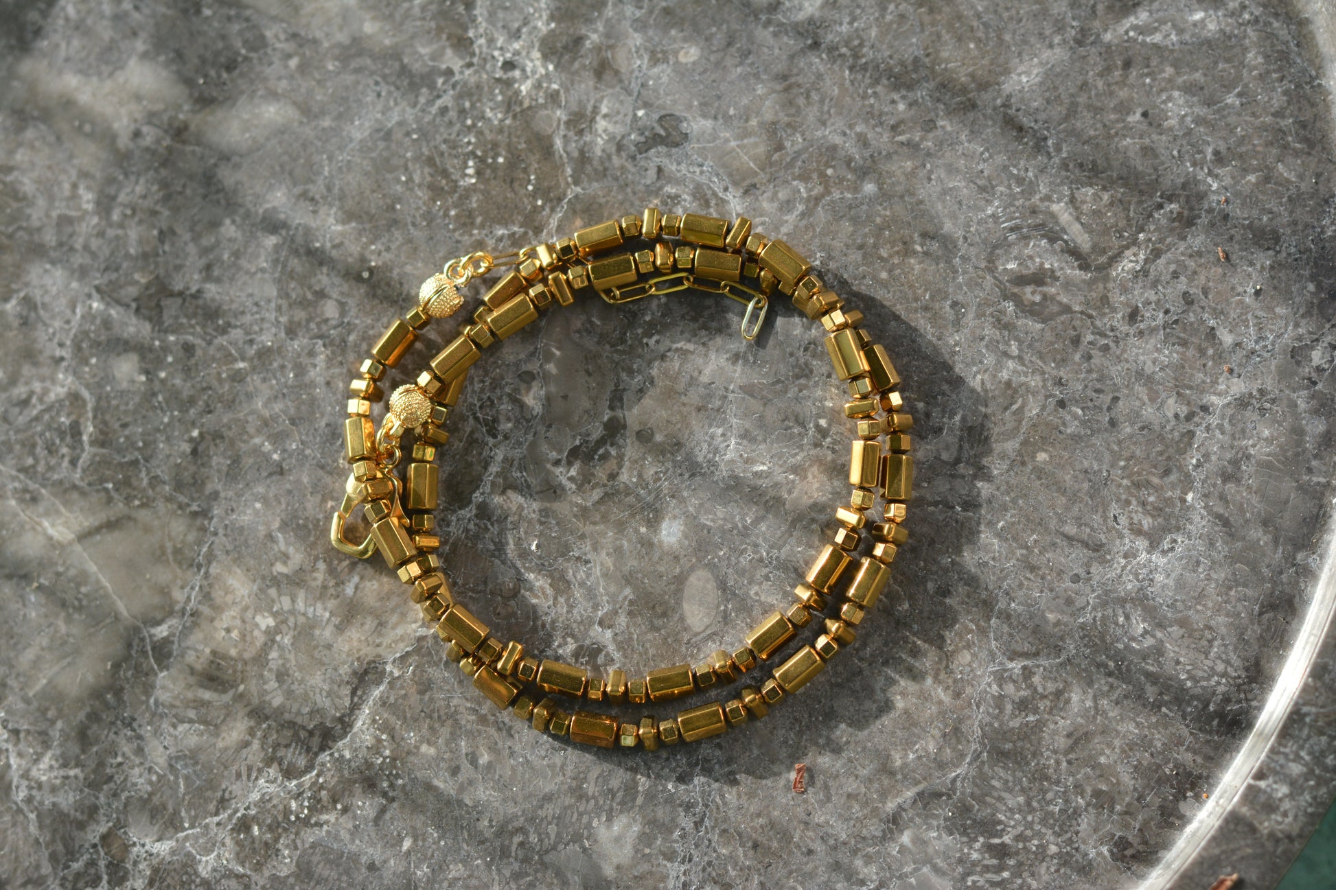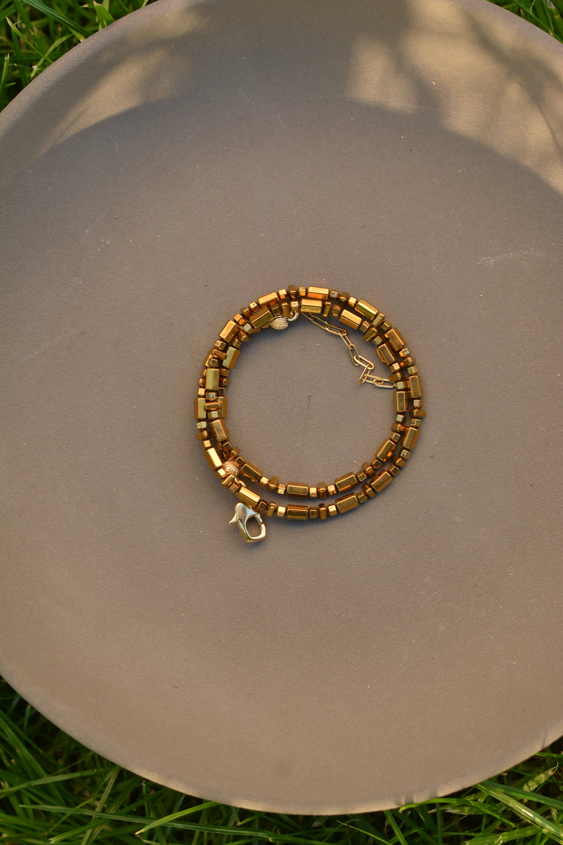 Doğal taşlar ve altın kaplama parçalar içeren koleksiyonlarımızın uzun ömürlü olması için, parfüm, krem ve alkol gibi kimyasallarla temasından kaçınılmasını öneririz. Bu tür maddeler, taşların doğal yapısını ve kaplamaların dayanıklılığını olumsuz etkileyebilir. Ürünlerinizi korumak için bu tür dış etkenlerden uzak tutmanız önemlidir.