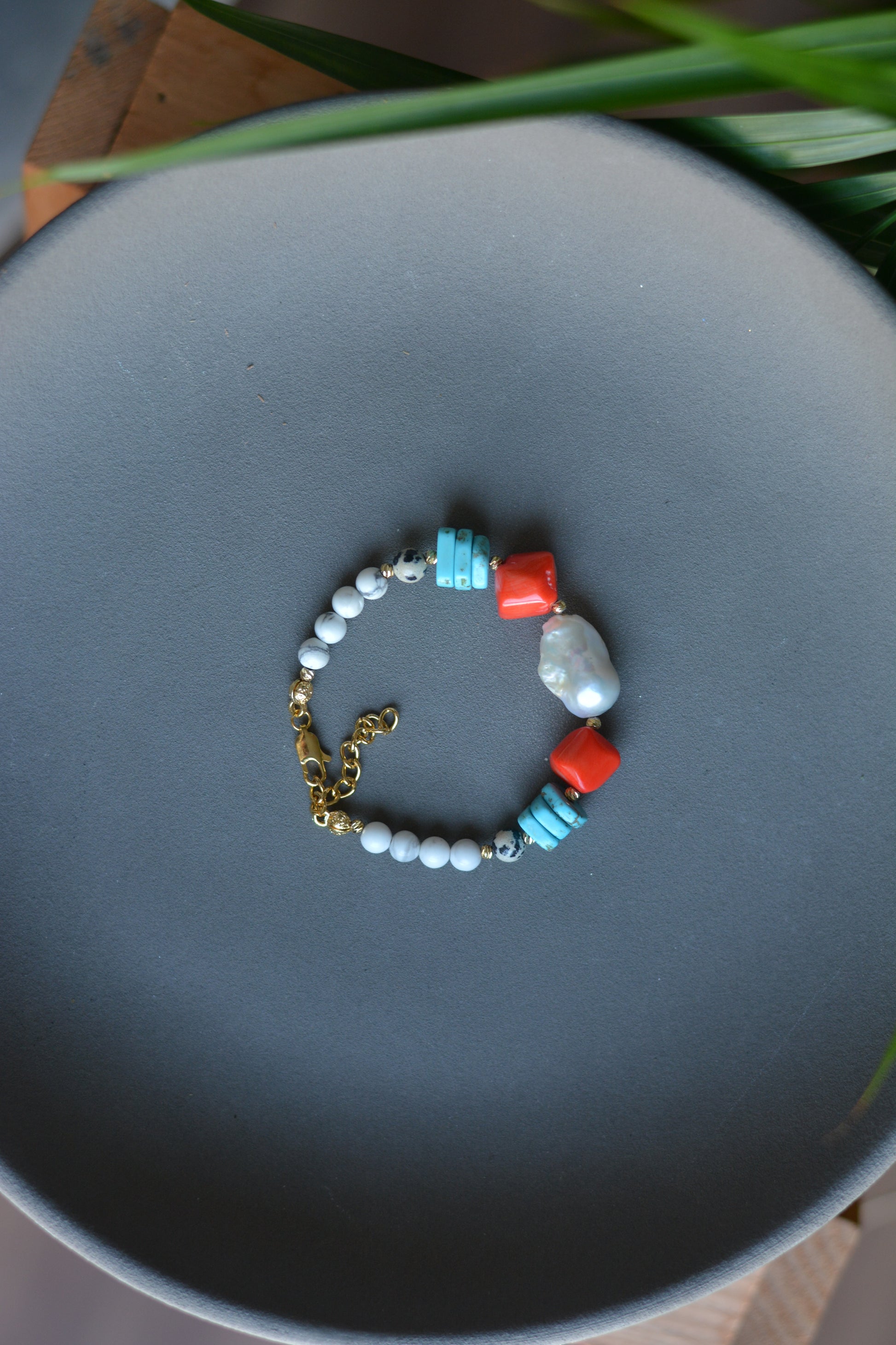 Malzemeler: İnci, Turkuaz, Mercan, Jasper, Dorika ve Çelik Aparatlar