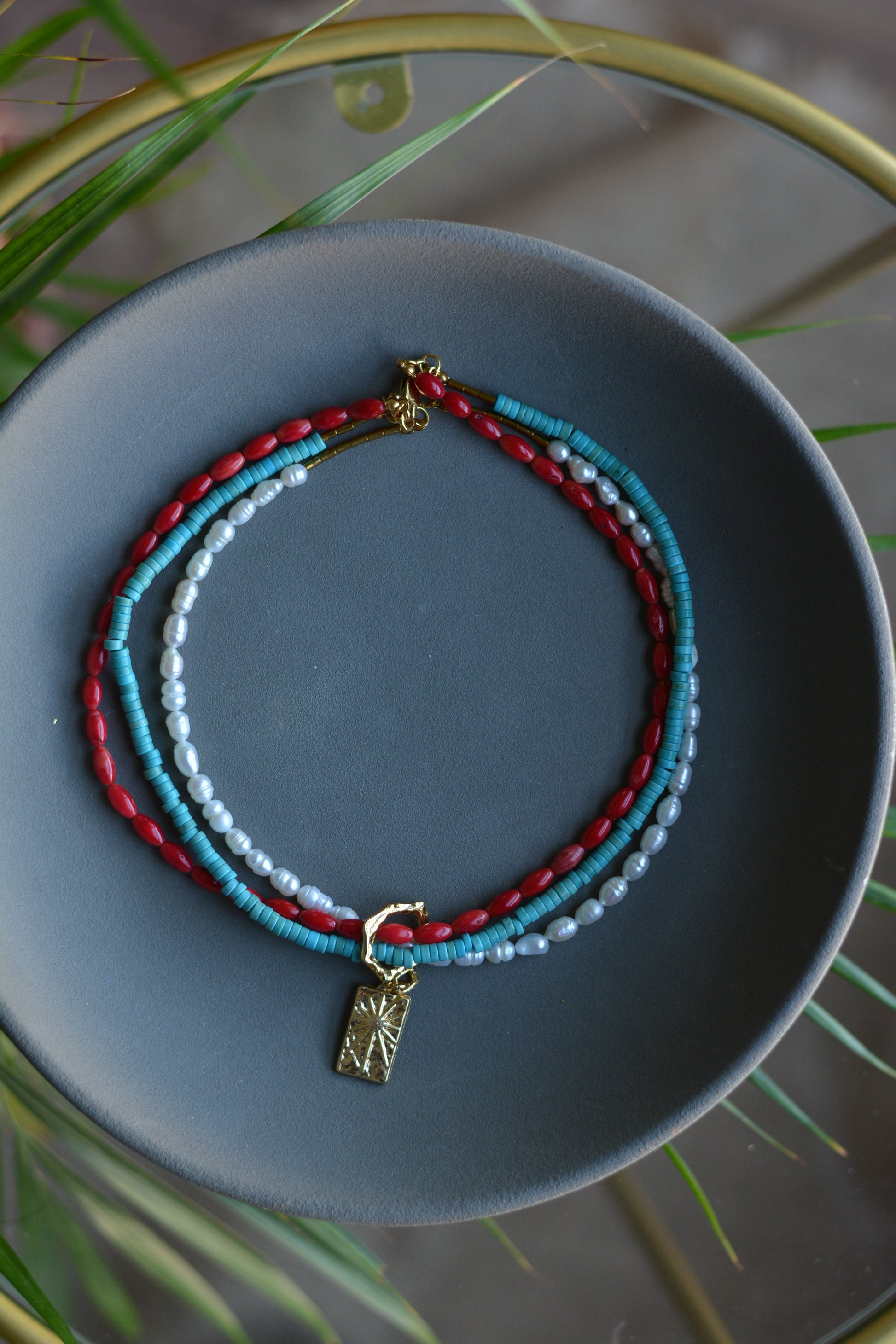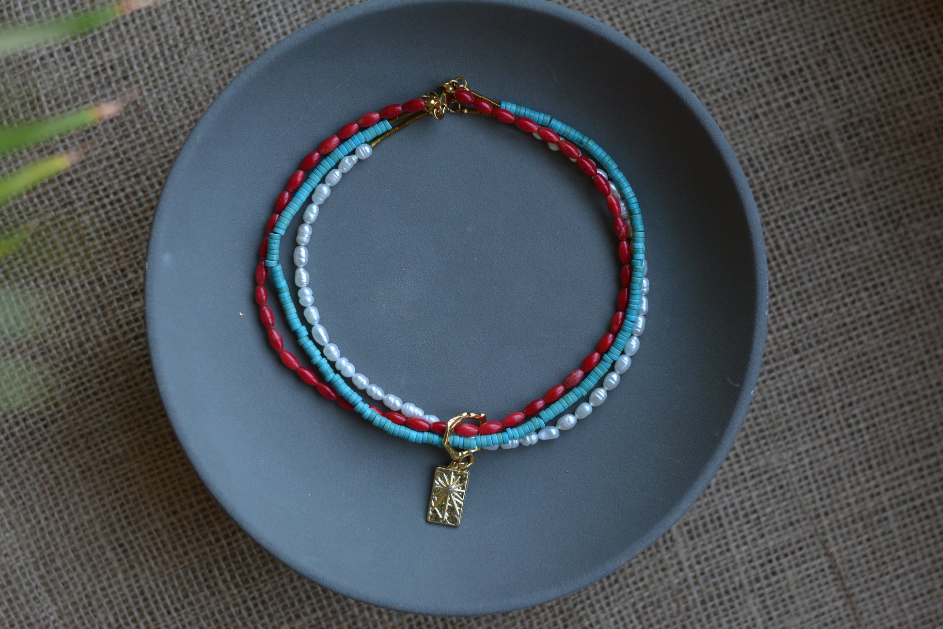 Malzemeler: Mercan, İnci, Turkuaz, Çelik Aparat