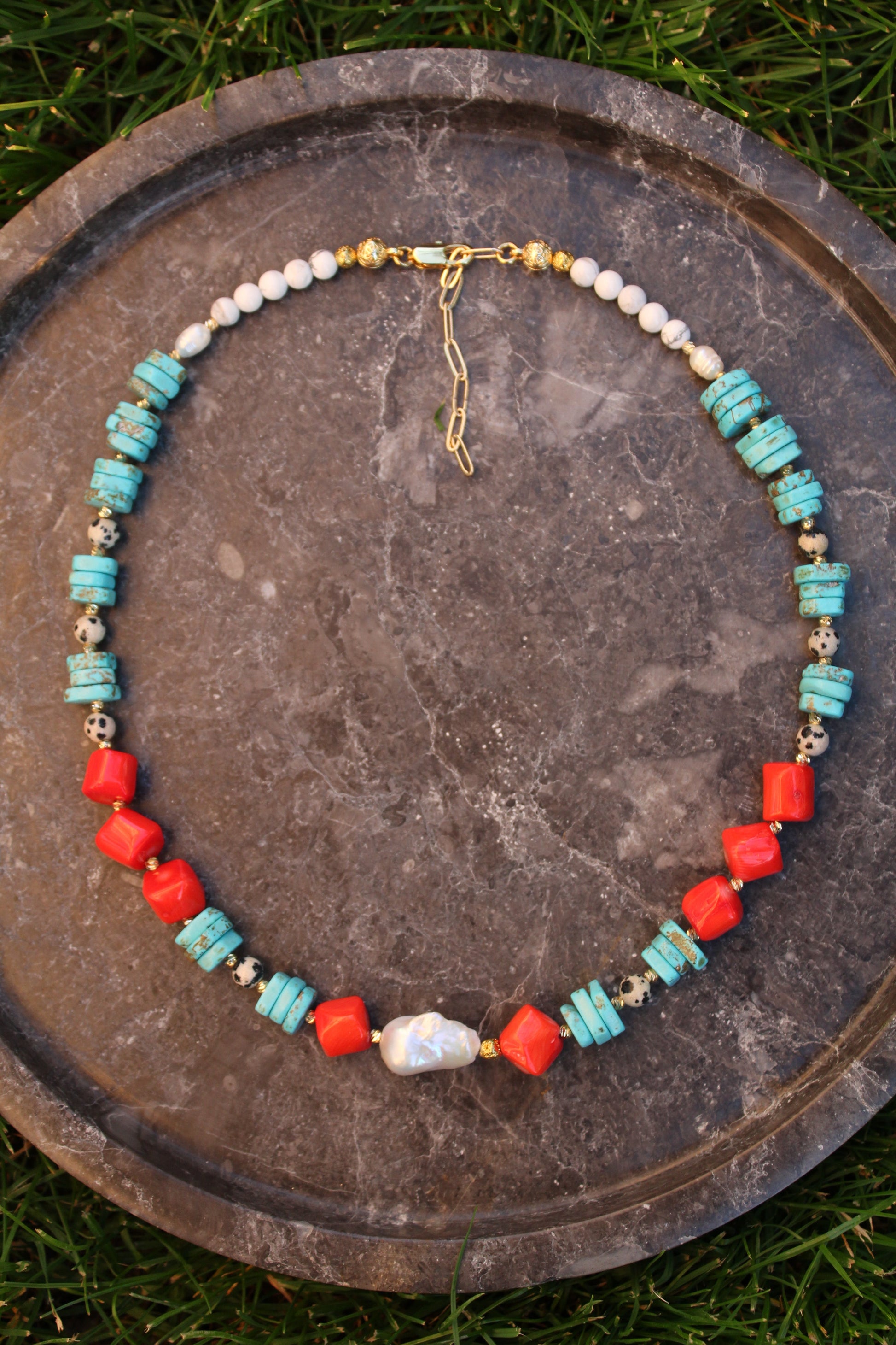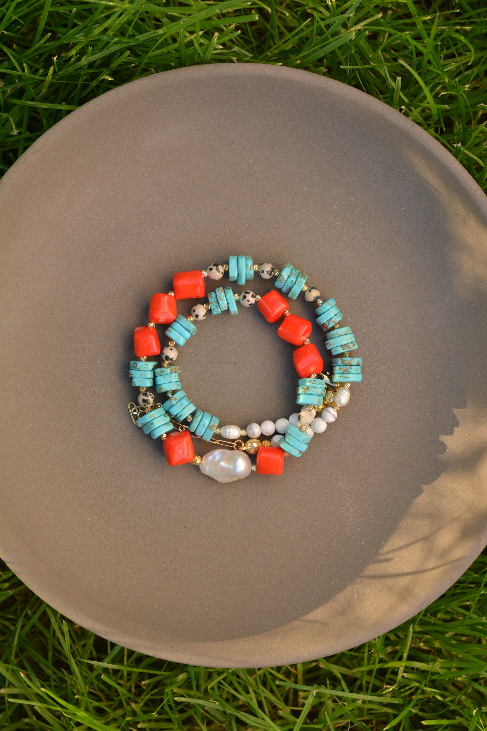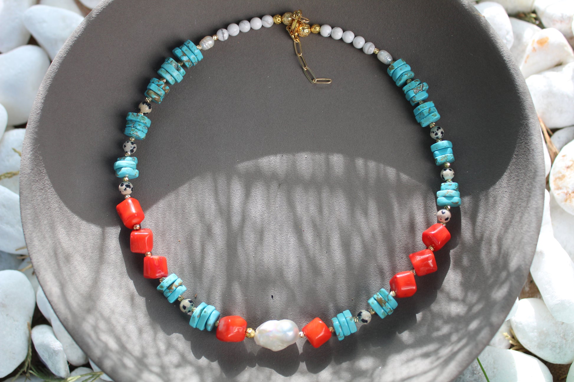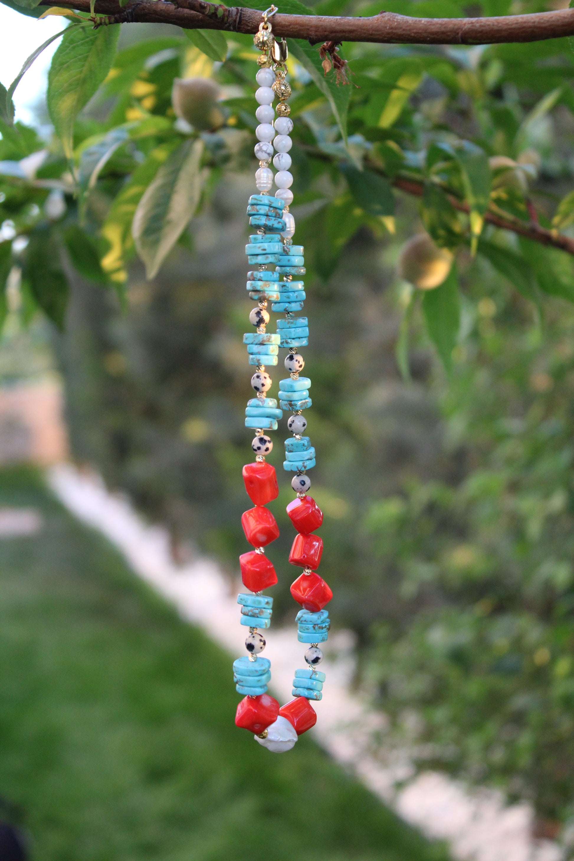 Malzemeler: İnci, Mercan, Turkuaz, Jasper, Ay taşı, Lav taşı, Dorika ve Çelik Aparatlar