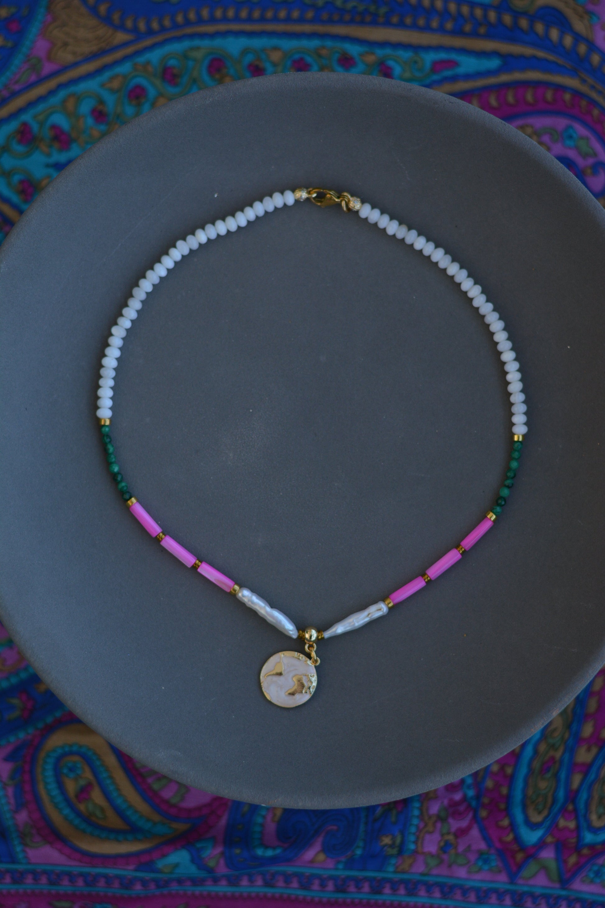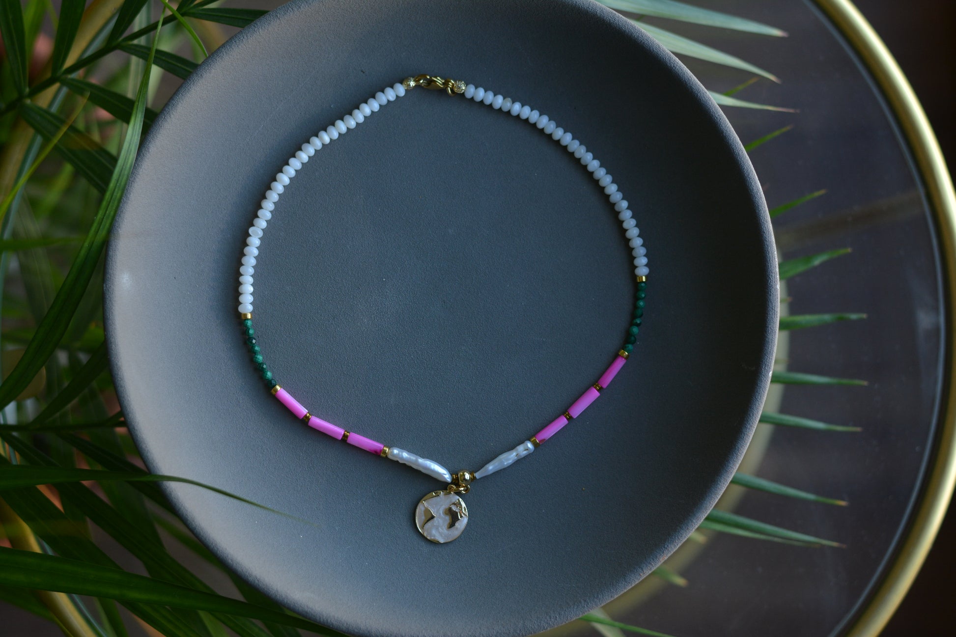 Doğal taşlar ve altın kaplama parçalar içeren koleksiyonlarımızın uzun ömürlü olması için, parfüm, krem ve alkol gibi kimyasallarla temasından kaçınılmasını öneririz. Bu tür maddeler, taşların doğal yapısını ve kaplamaların dayanıklılığını olumsuz etkileyebilir. Ürünlerinizi korumak için bu tür dış etkenlerden uzak tutmanız önemlidir.