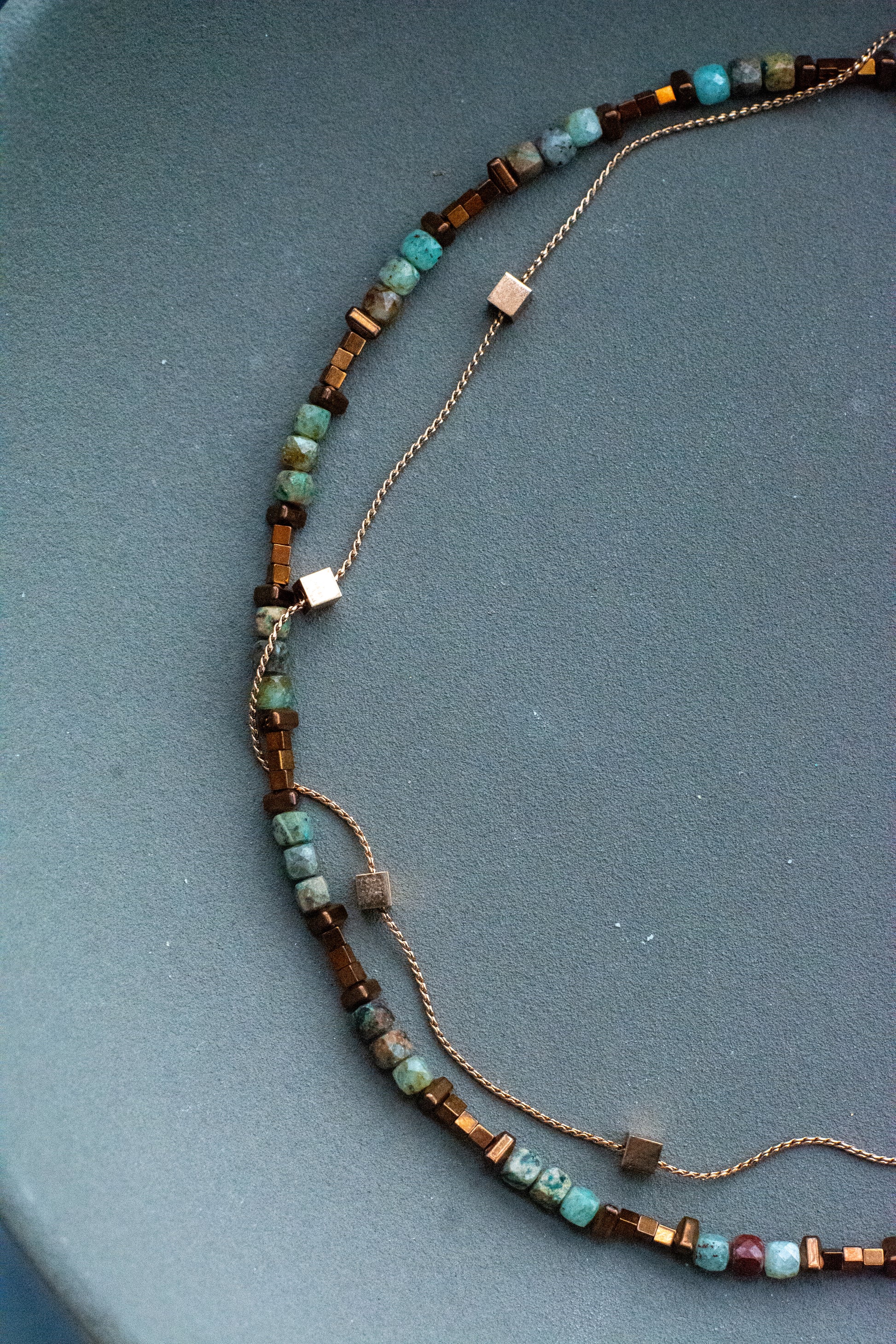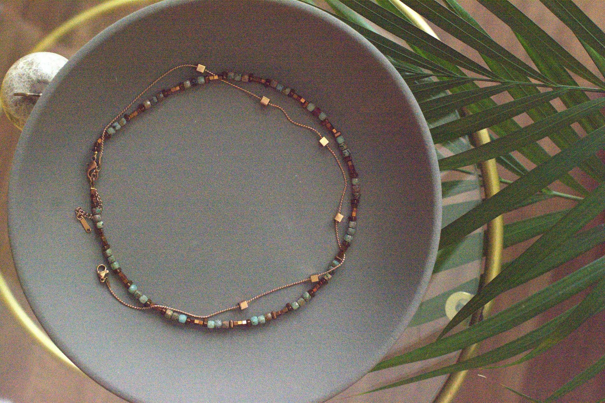 Doğal taşlar ve altın kaplama parçalar içeren koleksiyonlarımızın uzun ömürlü olması için, parfüm, krem ve alkol gibi kimyasallarla temasından kaçınılmasını öneririz. Bu tür maddeler, taşların doğal yapısını ve kaplamaların dayanıklılığını olumsuz etkileyebilir. Ürünlerinizi korumak için bu tür dış etkenlerden uzak tutmanız önemlidir.