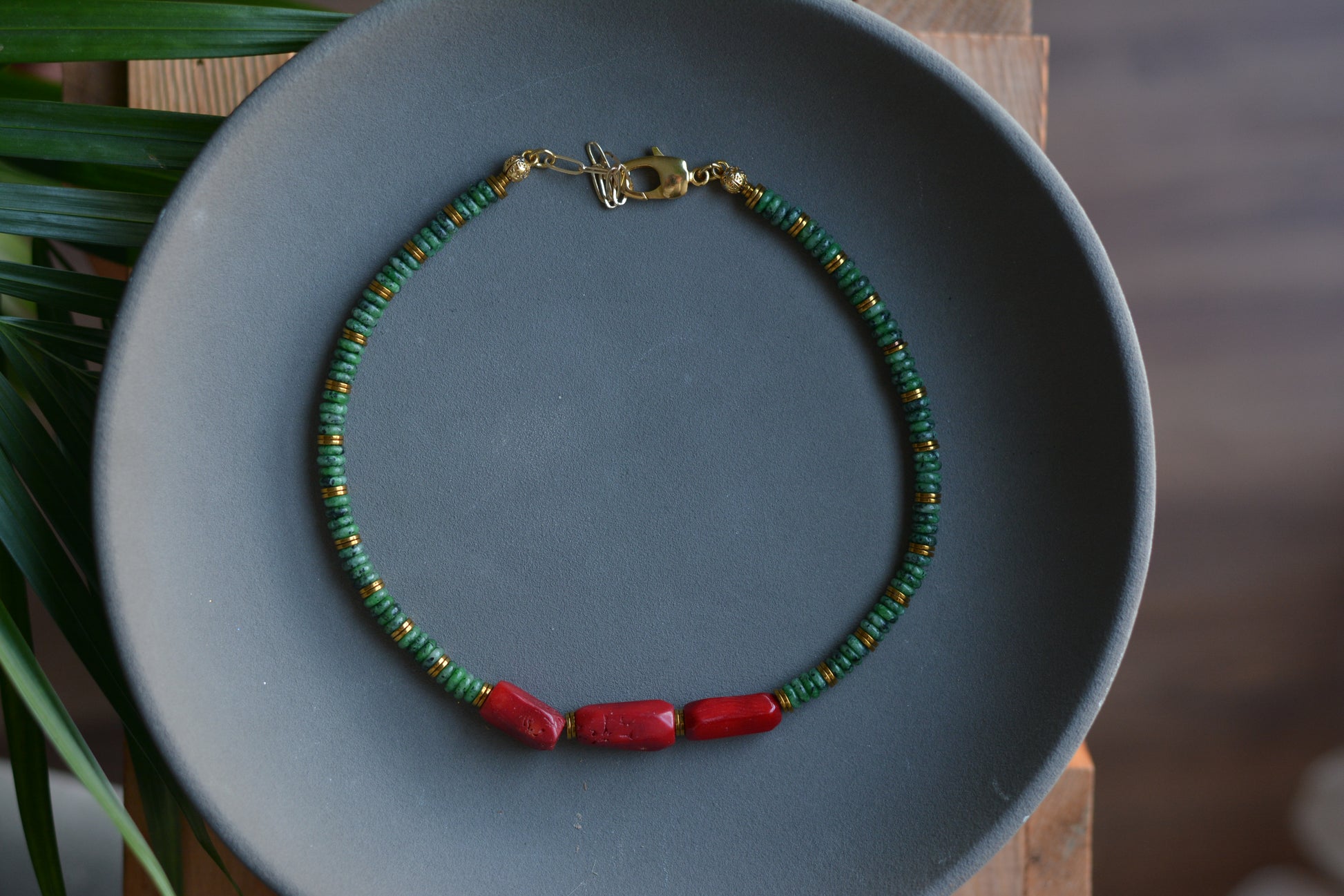 Malzemeler: Afrika Turkuazı, Mercan, Hematit, Çelik Aparatlar