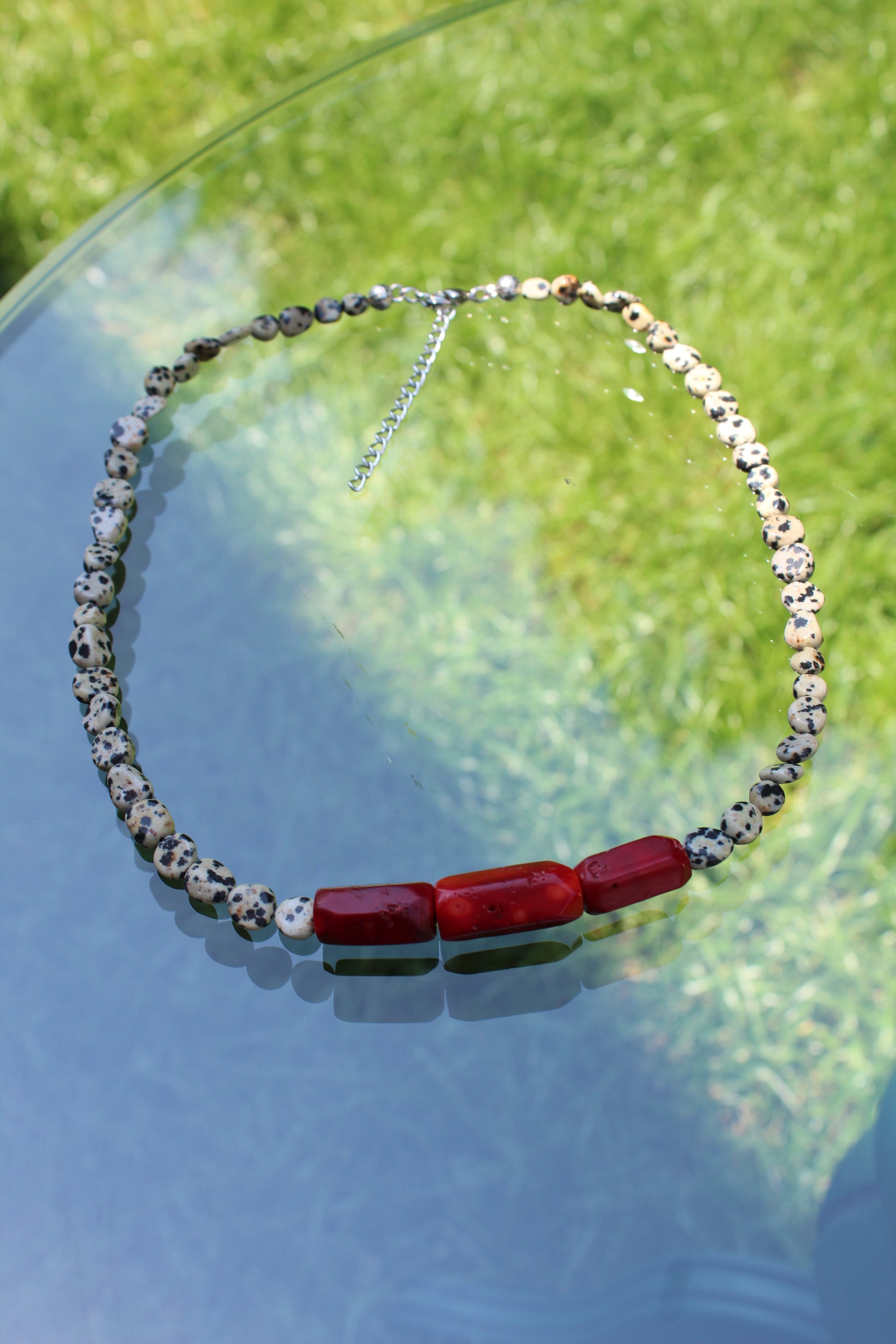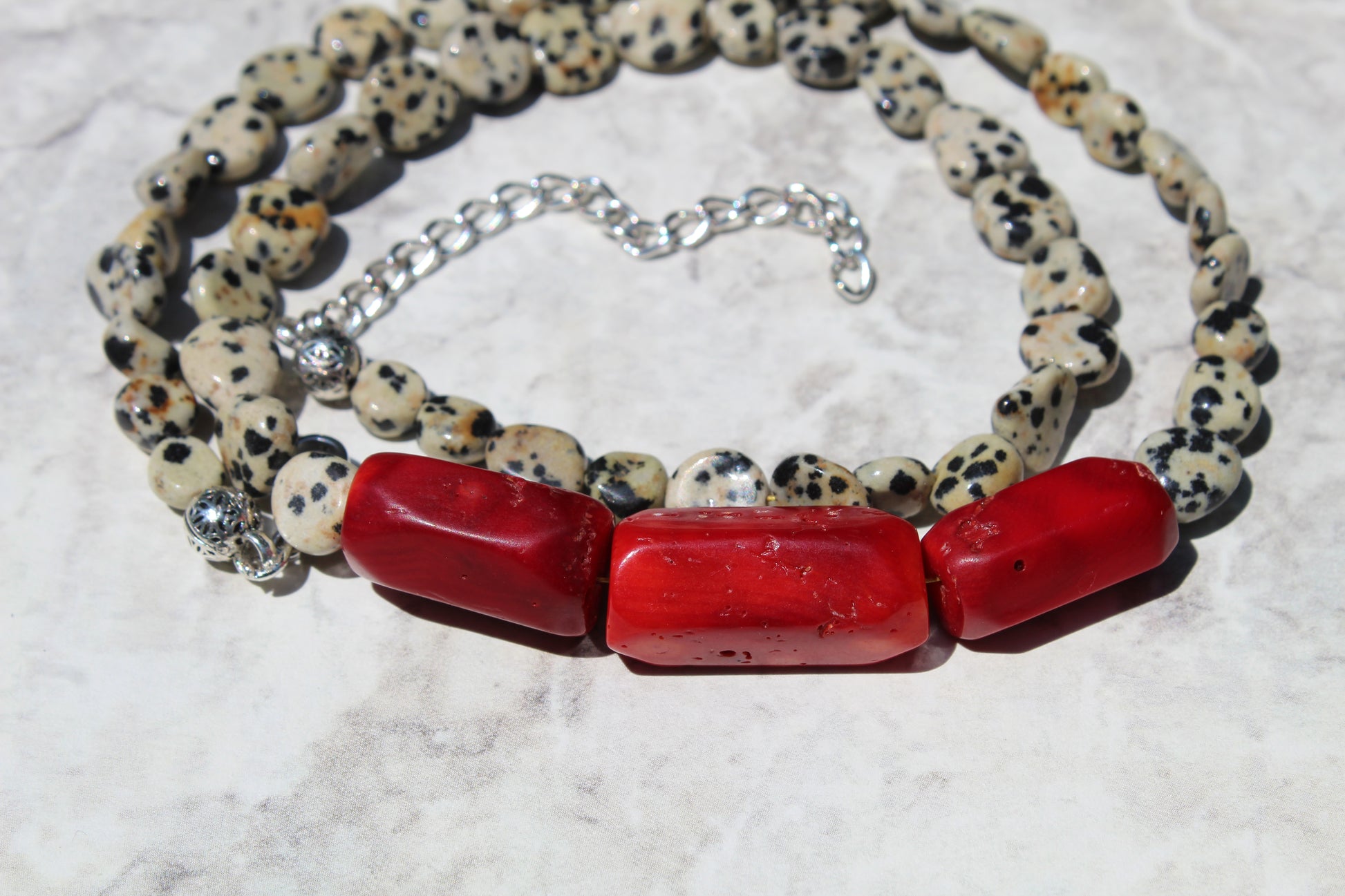 Malzemeler: Dalmaçya Jasper, Mercan, Çelik Aparatlar