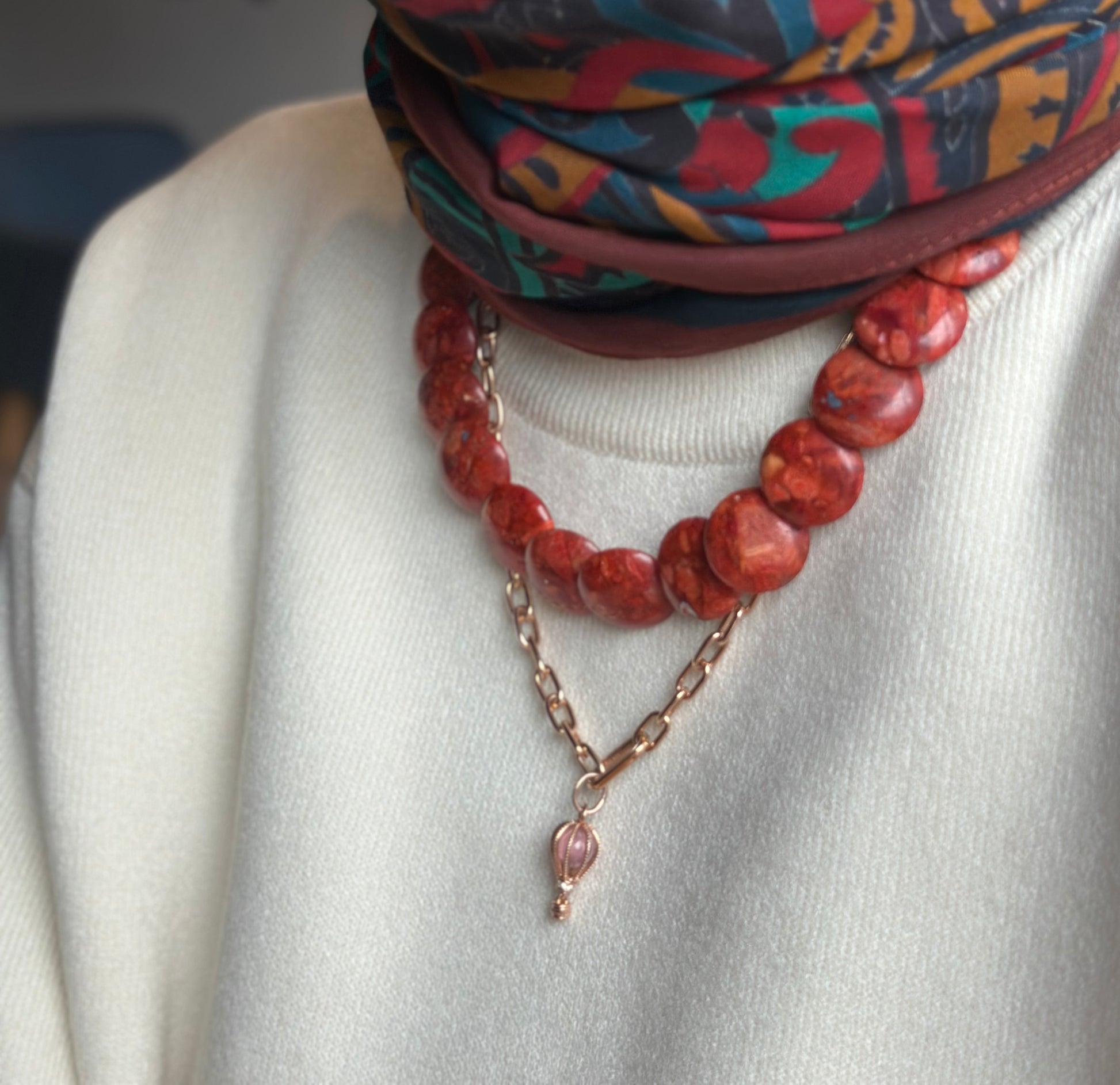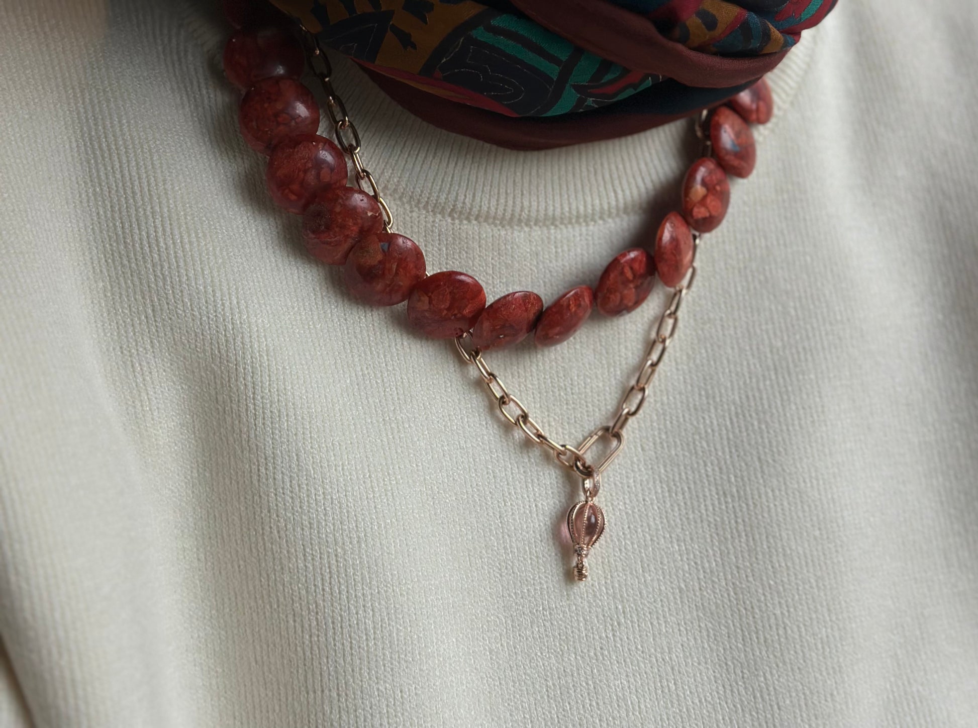 Ürün yalnızca mercan kolyeyi içerir. Görseldeki diğer kolye(ler), kombin amaçlıdır.