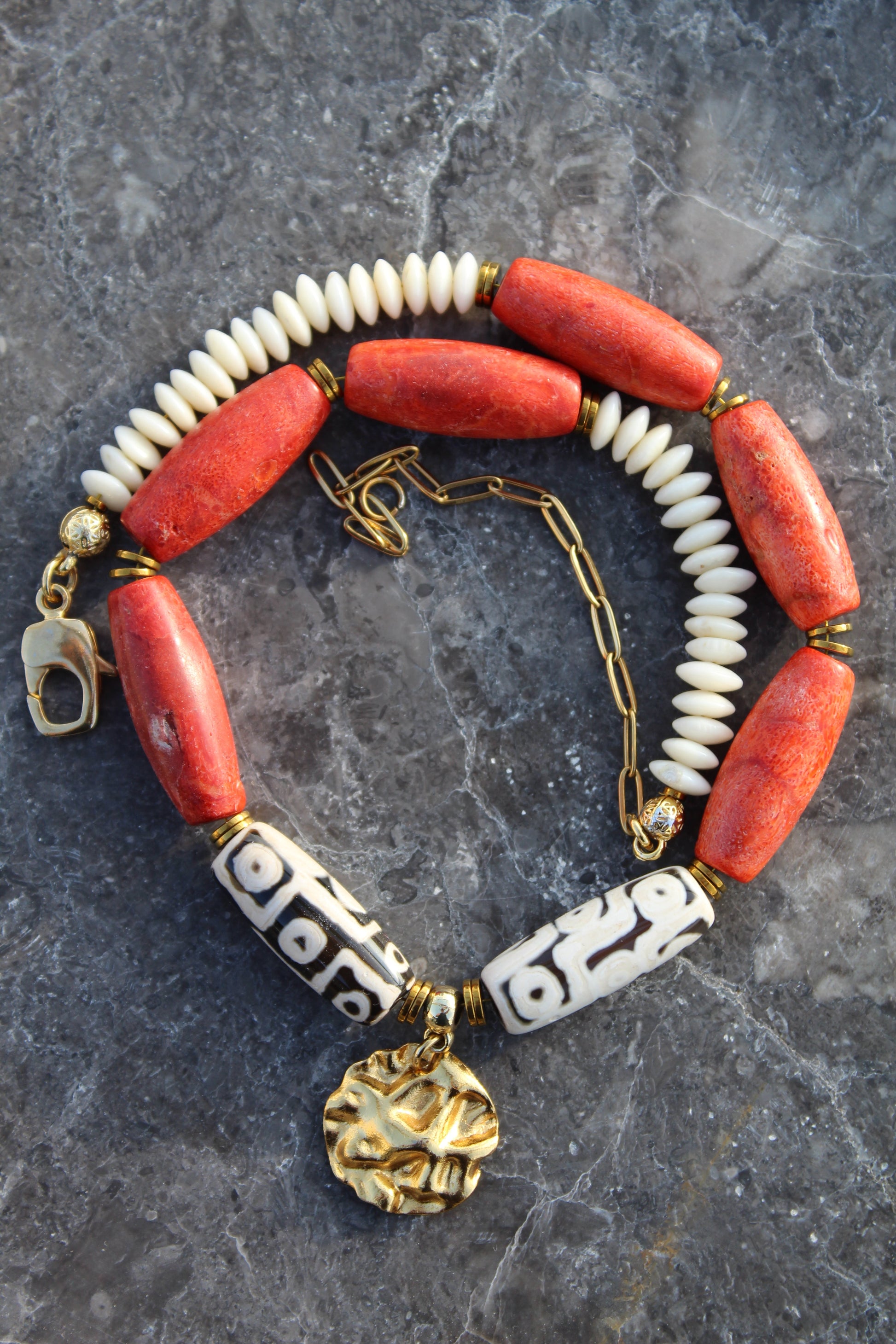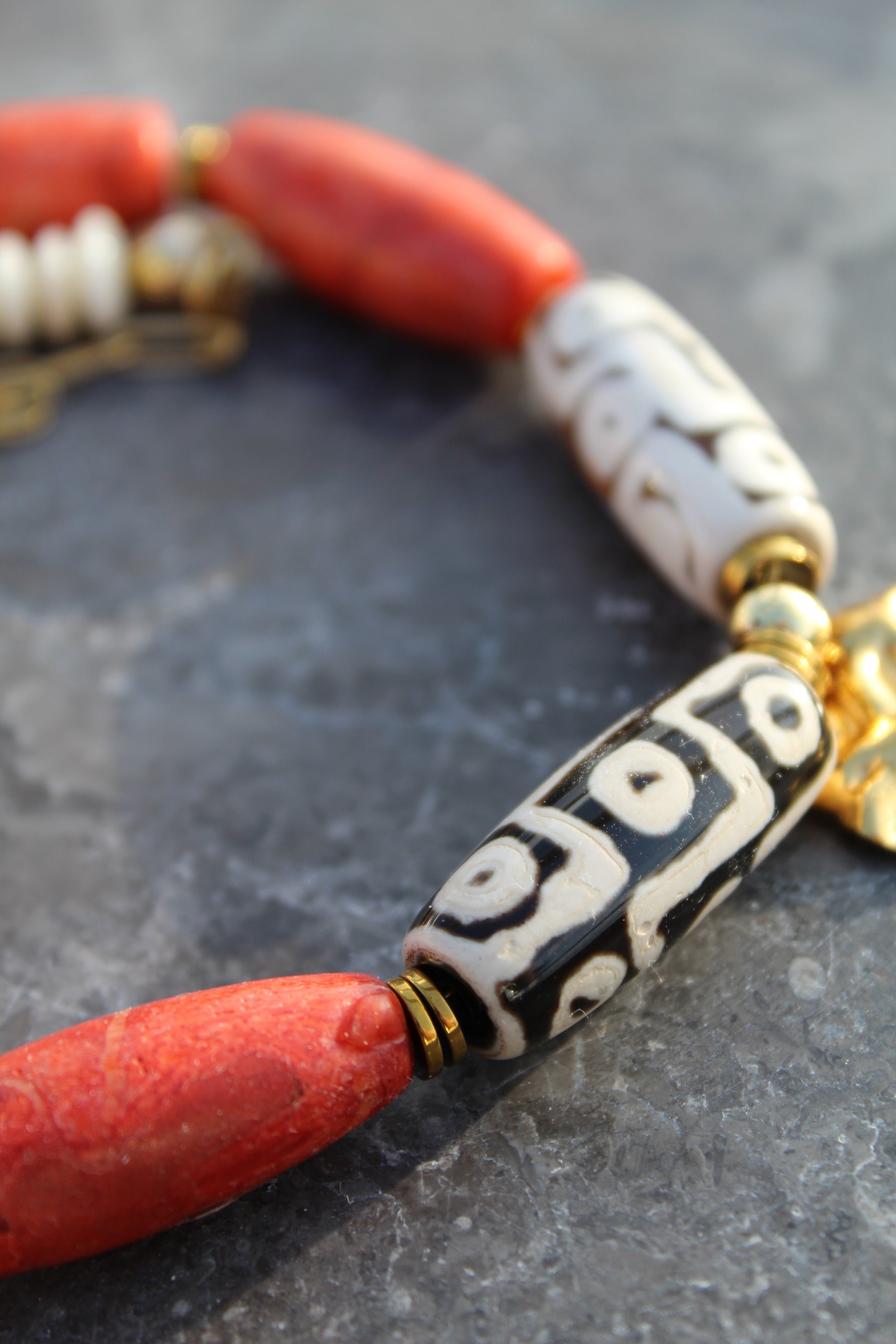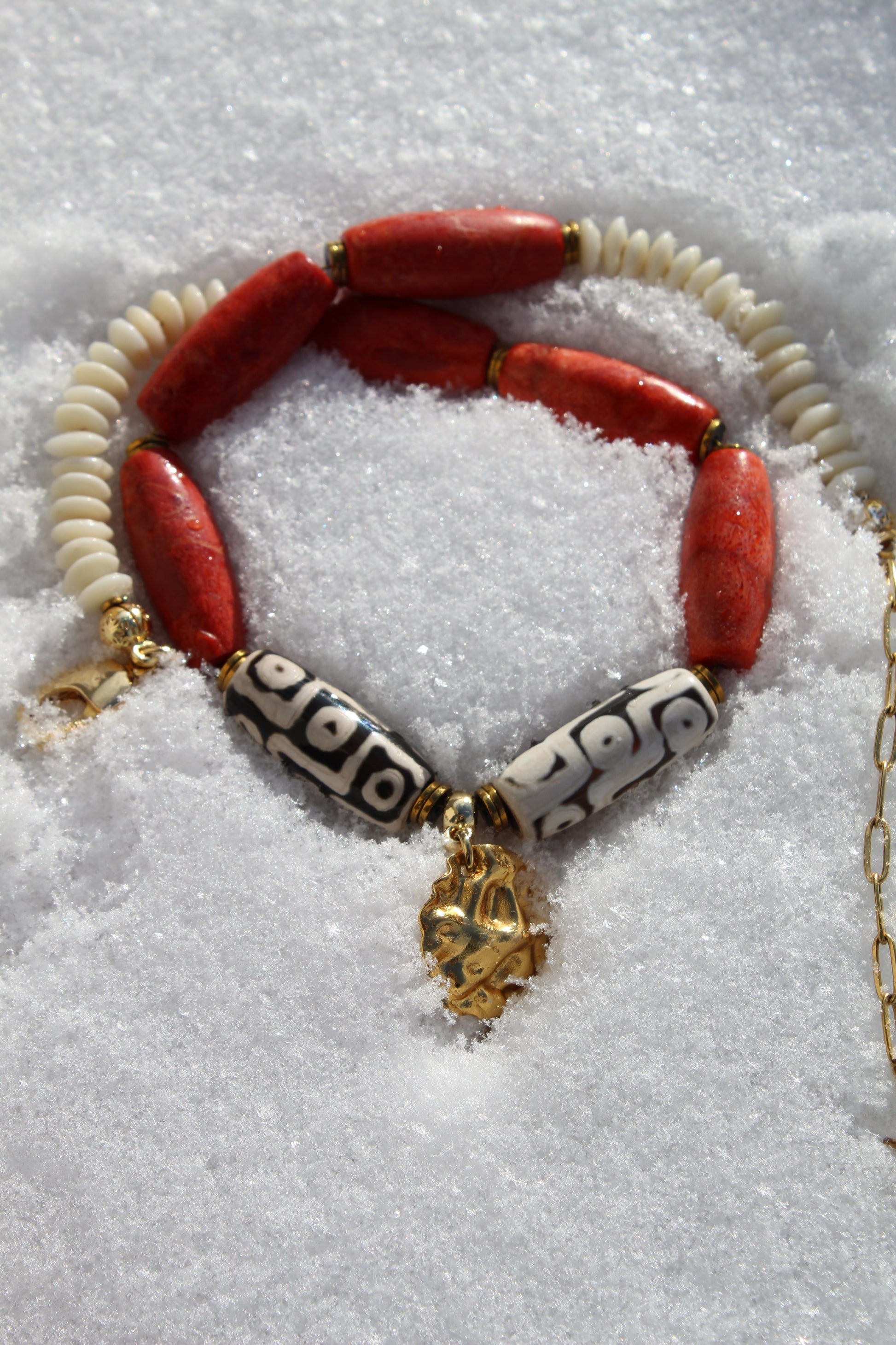 Malzemeler: Tibet Akik, Mercan, Beyaz Mercan, Hematit, Çelik Aparat