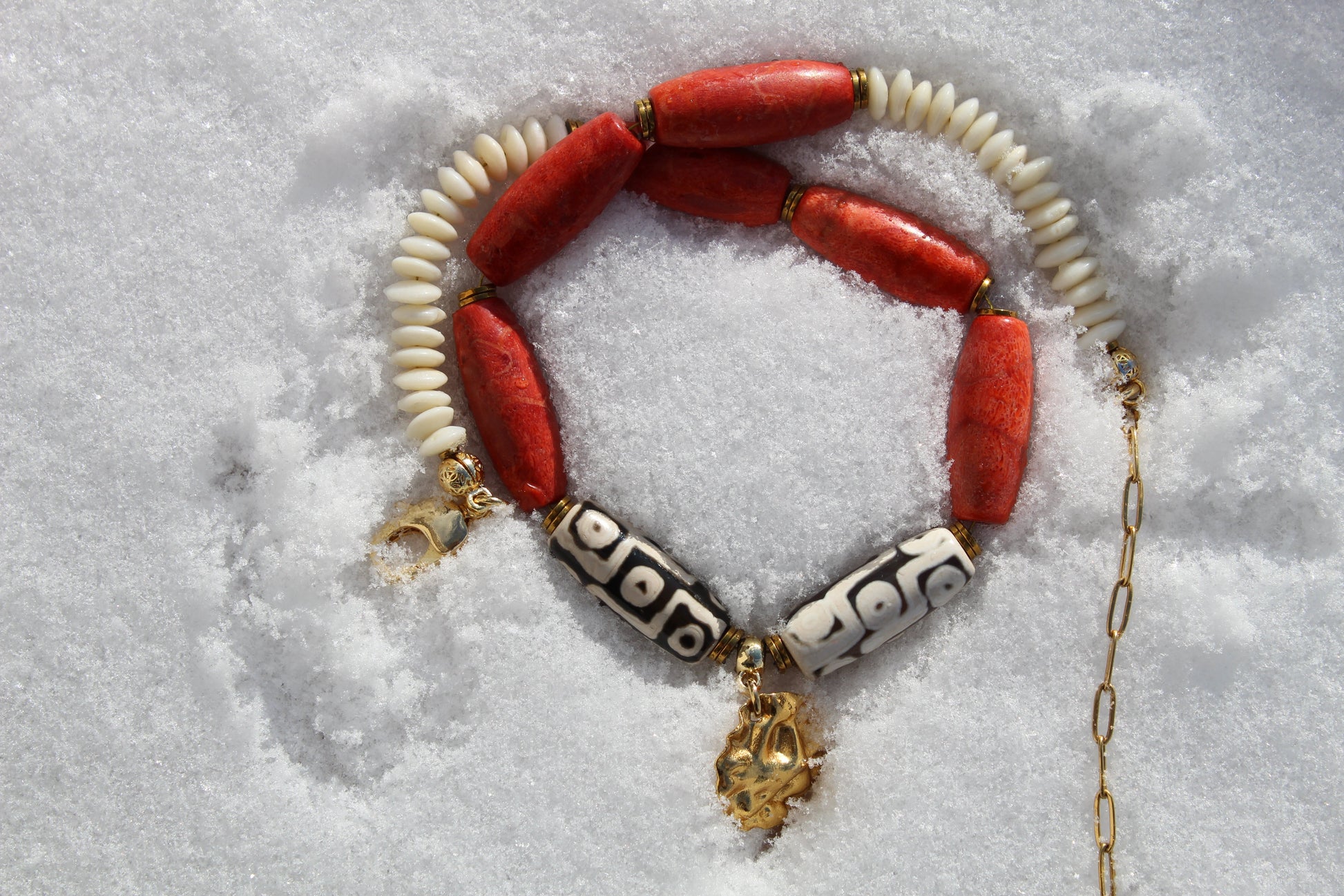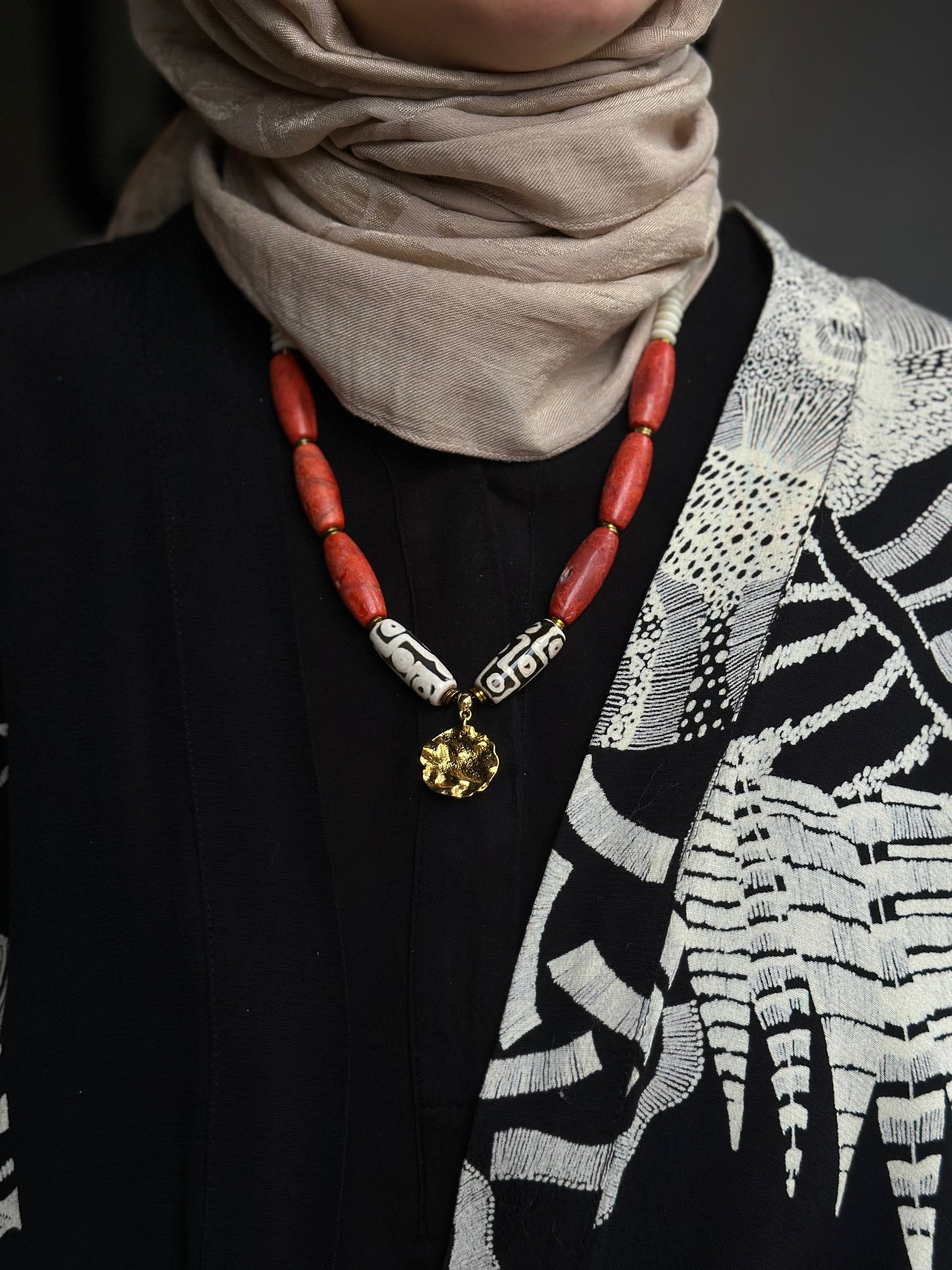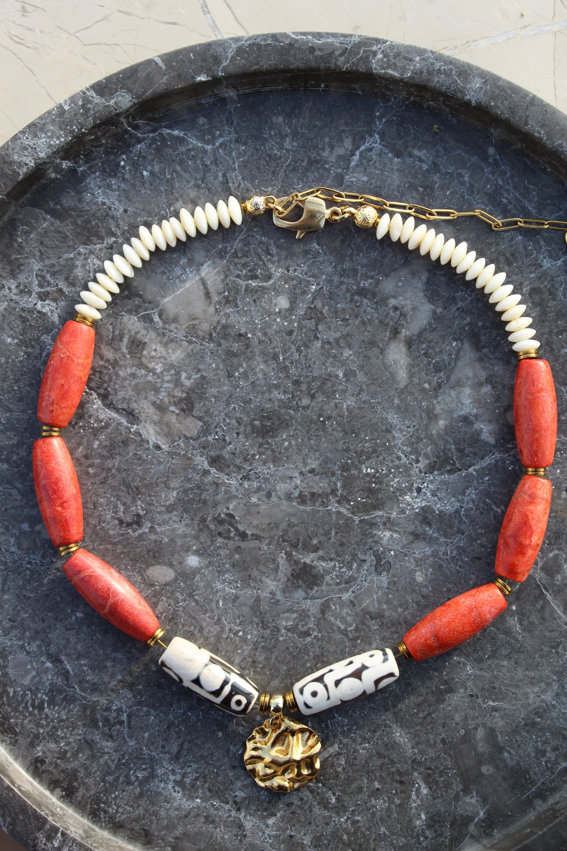 Malzemeler: Tibet Akik, Mercan, Beyaz Mercan, Hematit, Çelik Aparat
