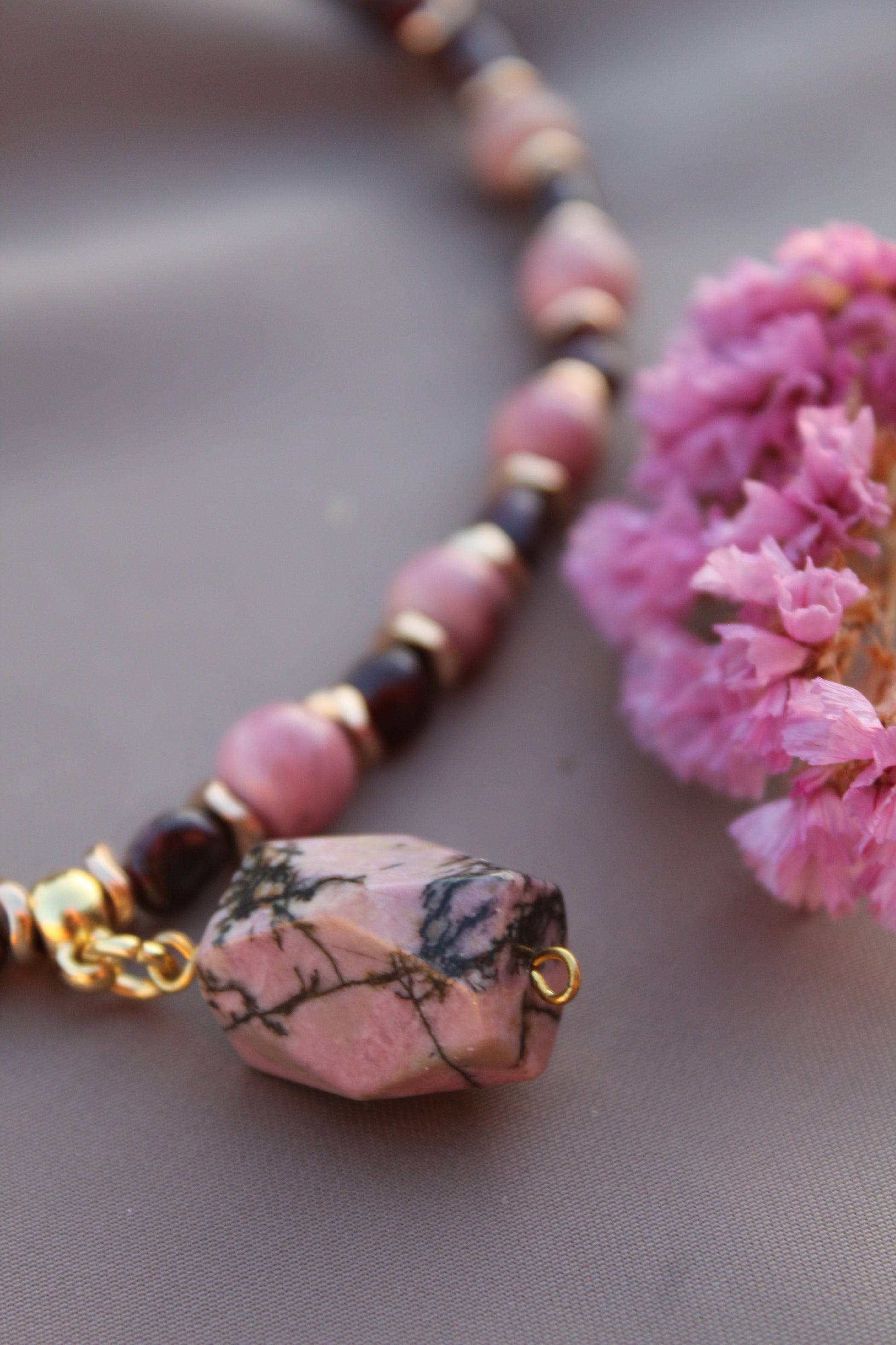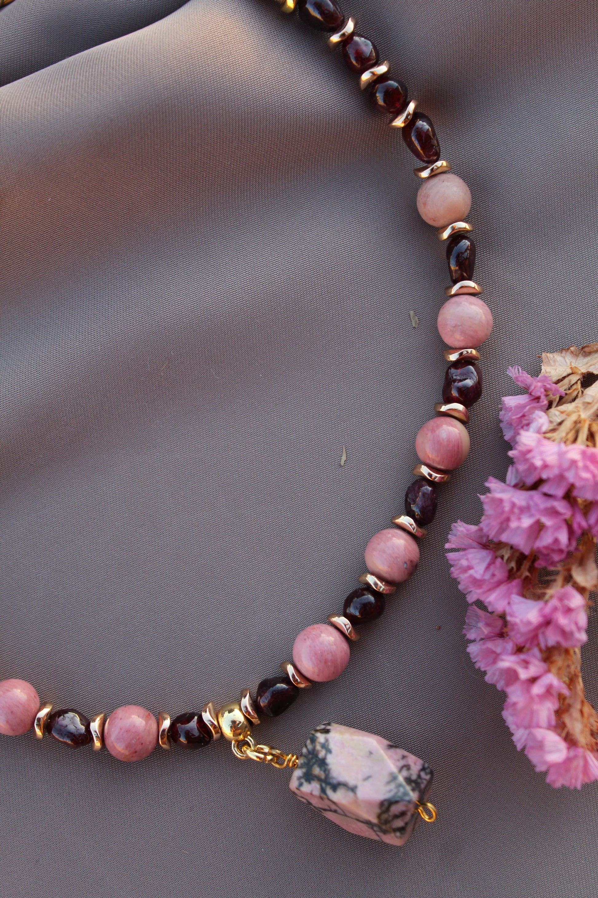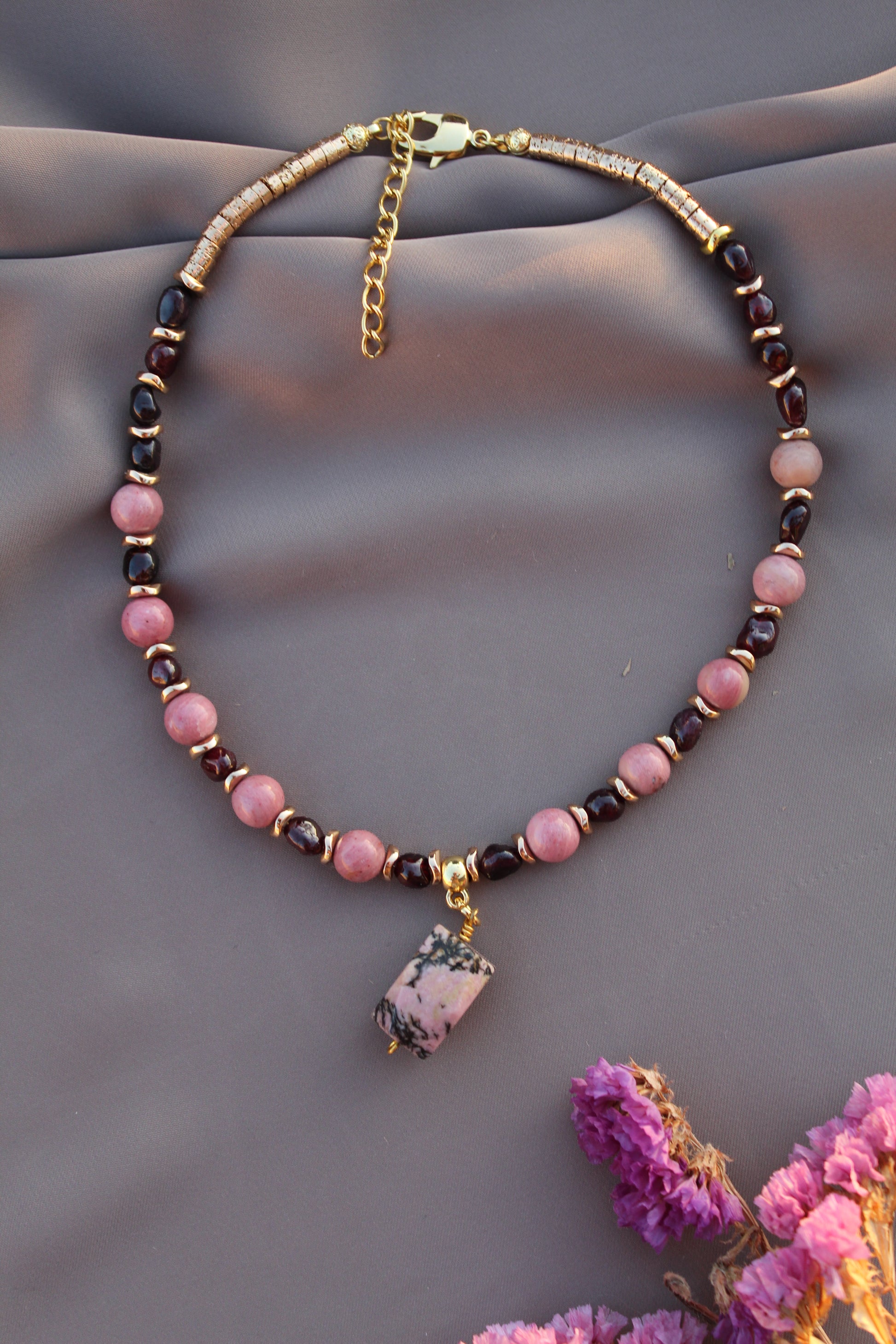 Malzemeler: Rodonit, Granat, Lav Taşı, Rodonit Kolye Ucu, Hematit, Çelik Aparat