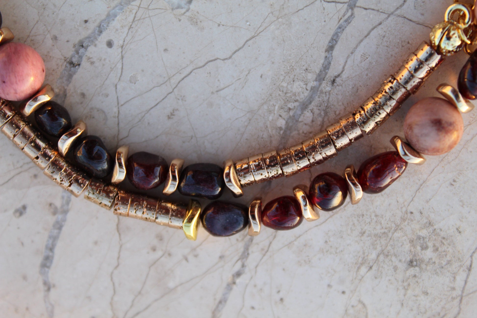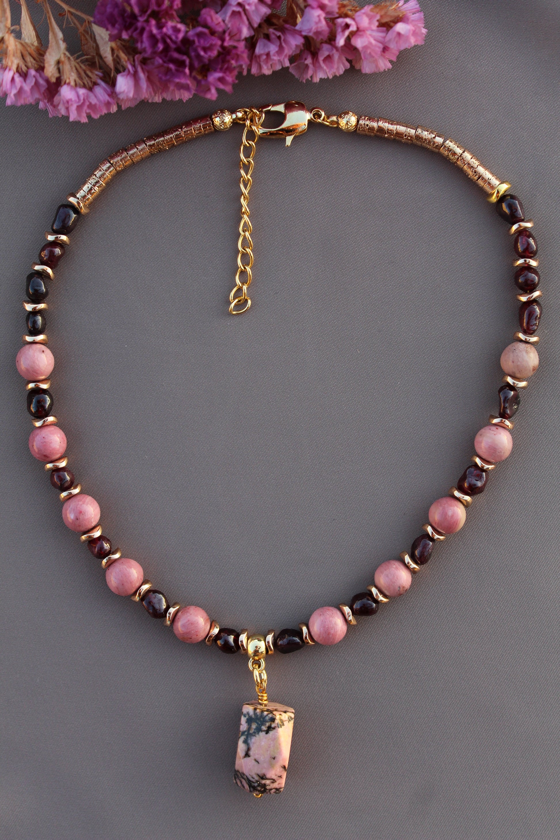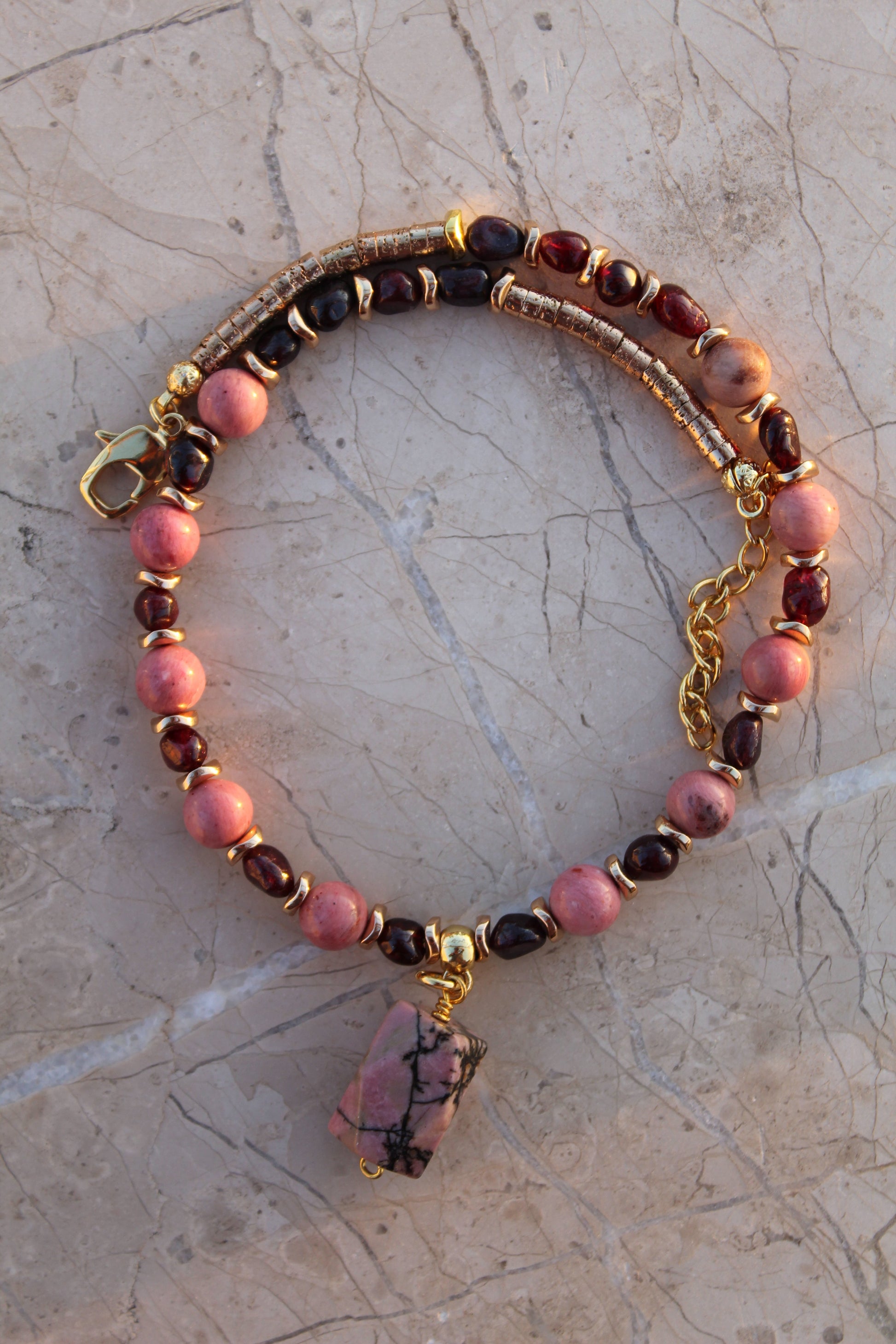Malzemeler: Rodonit, Granat, Lav Taşı, Rodonit Kolye Ucu, Hematit, Çelik Aparat