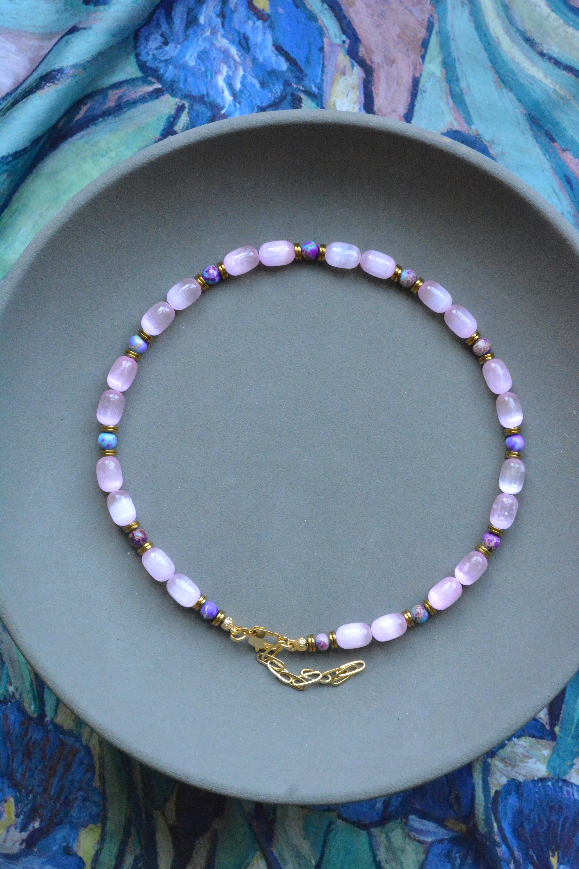Doğal taşlar ve altın kaplama parçalar içeren koleksiyonlarımızın uzun ömürlü olması için, parfüm, krem ve alkol gibi kimyasallarla temasından kaçınılmasını öneririz. Bu tür maddeler, taşların doğal yapısını ve kaplamaların dayanıklılığını olumsuz etkileyebilir. Ürünlerinizi korumak için bu tür dış etkenlerden uzak tutmanız önemlidir.