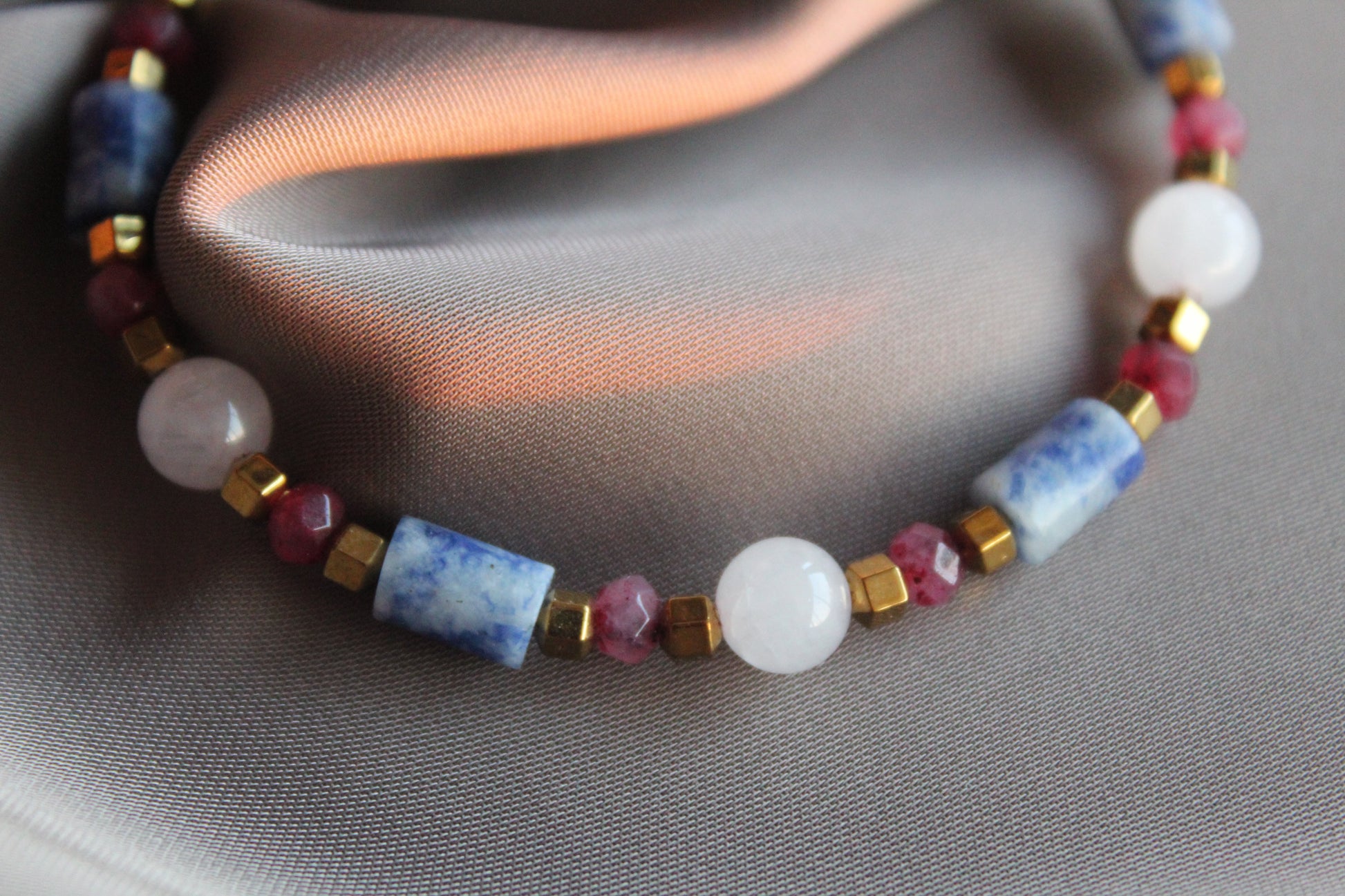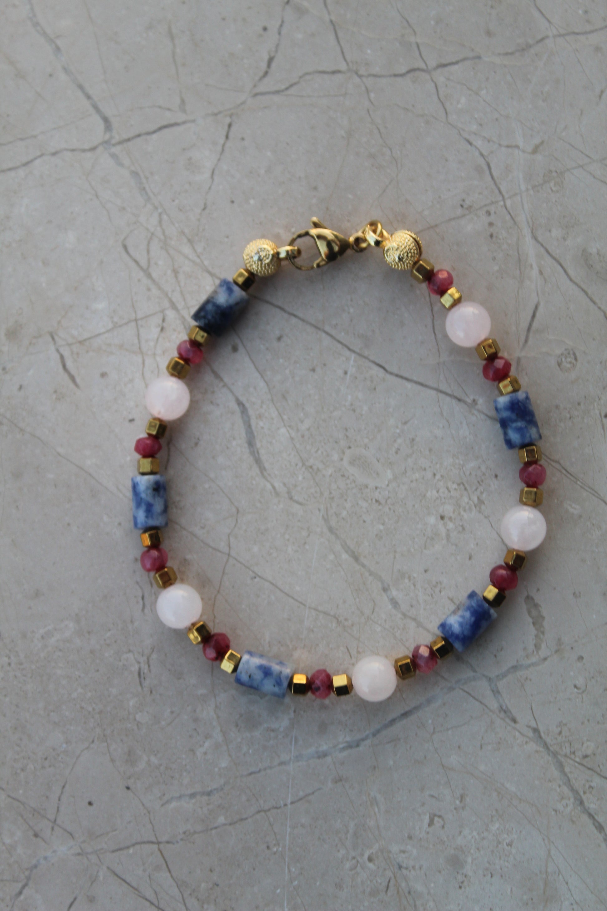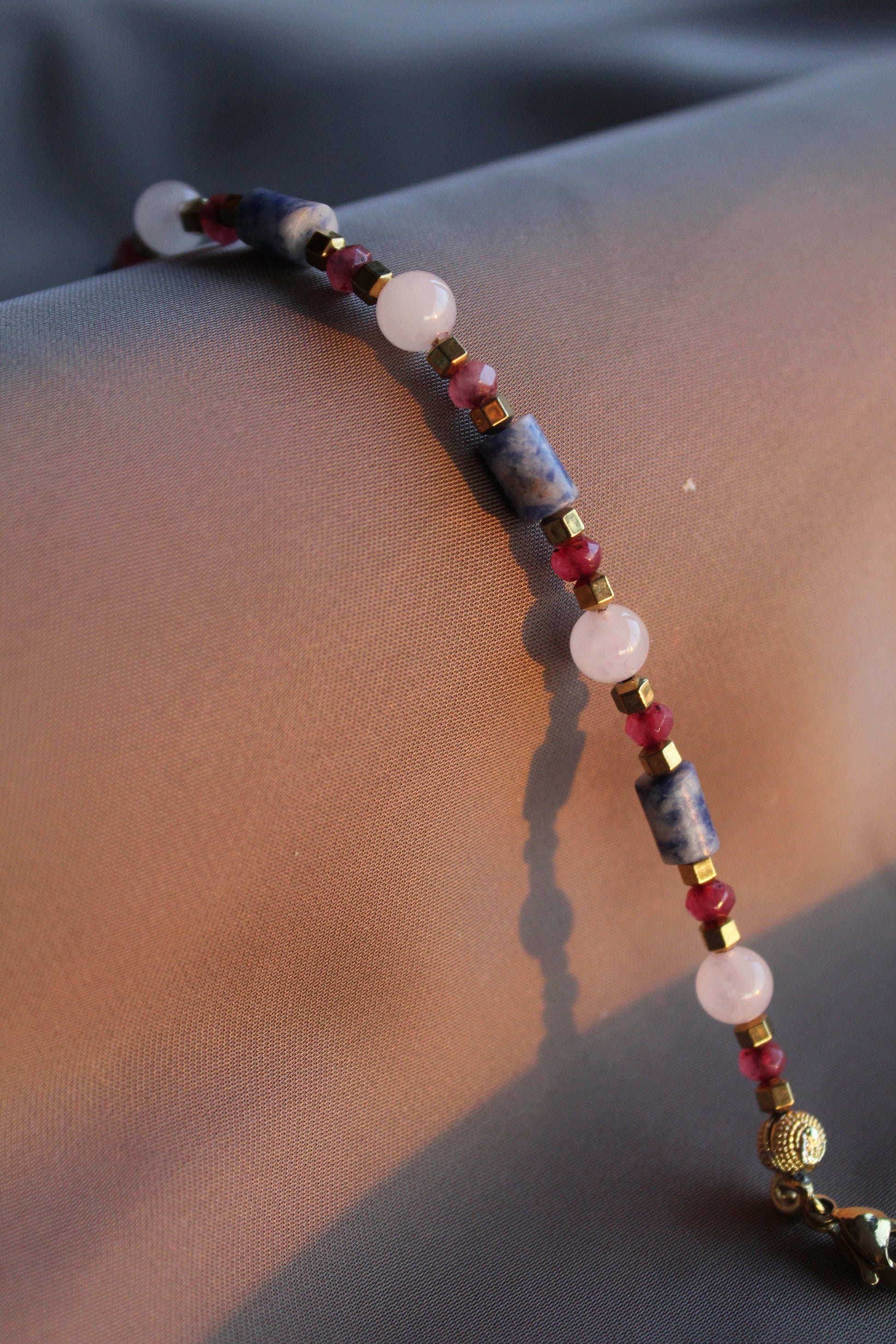 Malzemeler: Sodalit, Ay taşı, Pembe Kuvars, Hematit, Çelik Aparat