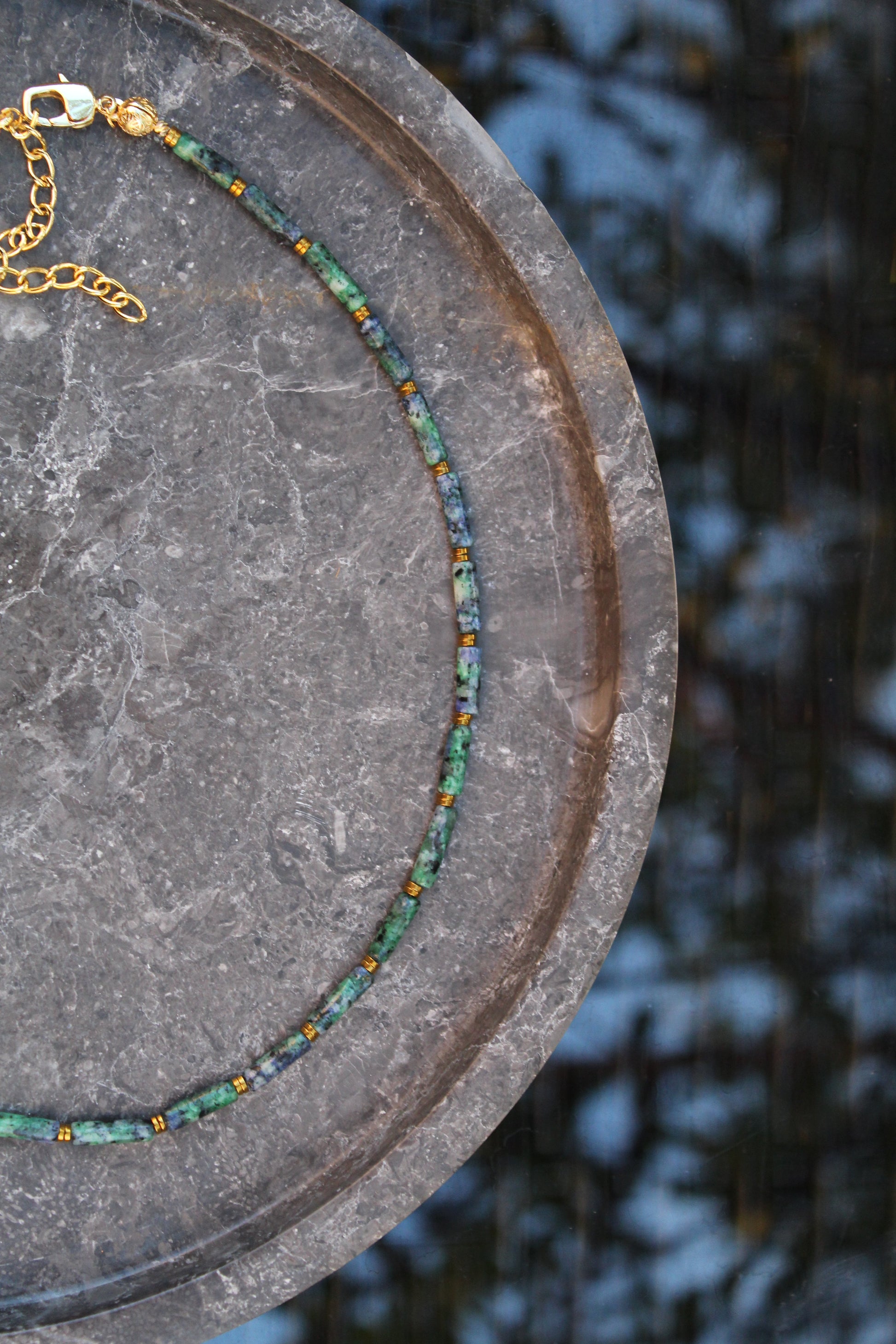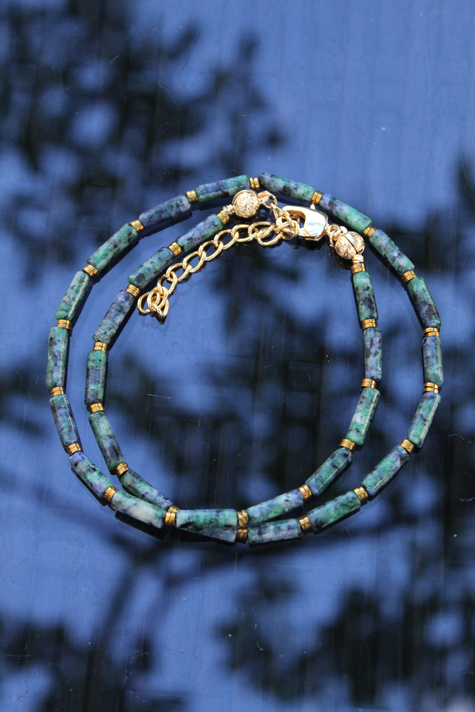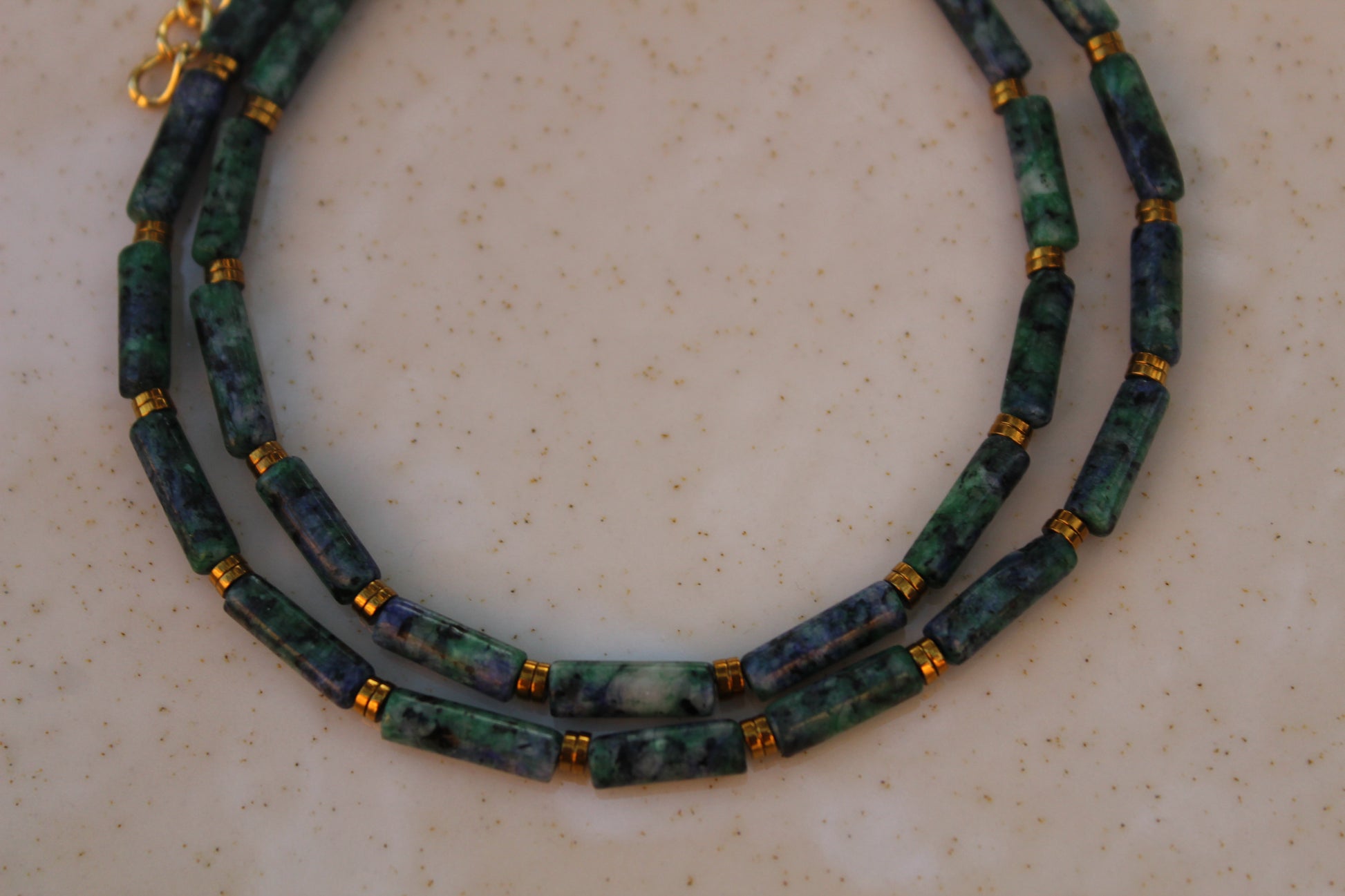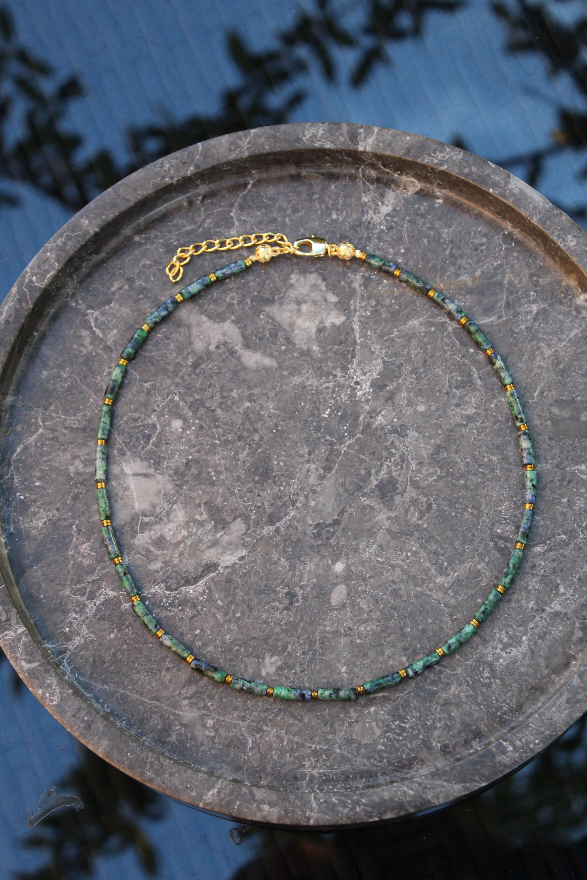Doğal taşlar ve altın kaplama parçalar içeren koleksiyonlarımızın uzun ömürlü olması için, parfüm, krem ve alkol gibi kimyasallarla temasından kaçınılmasını öneririz. Bu tür maddeler, taşların doğal yapısını ve kaplamaların dayanıklılığını olumsuz etkileyebilir. Ürünlerinizi korumak için bu tür dış etkenlerden uzak tutmanız önemlidir.