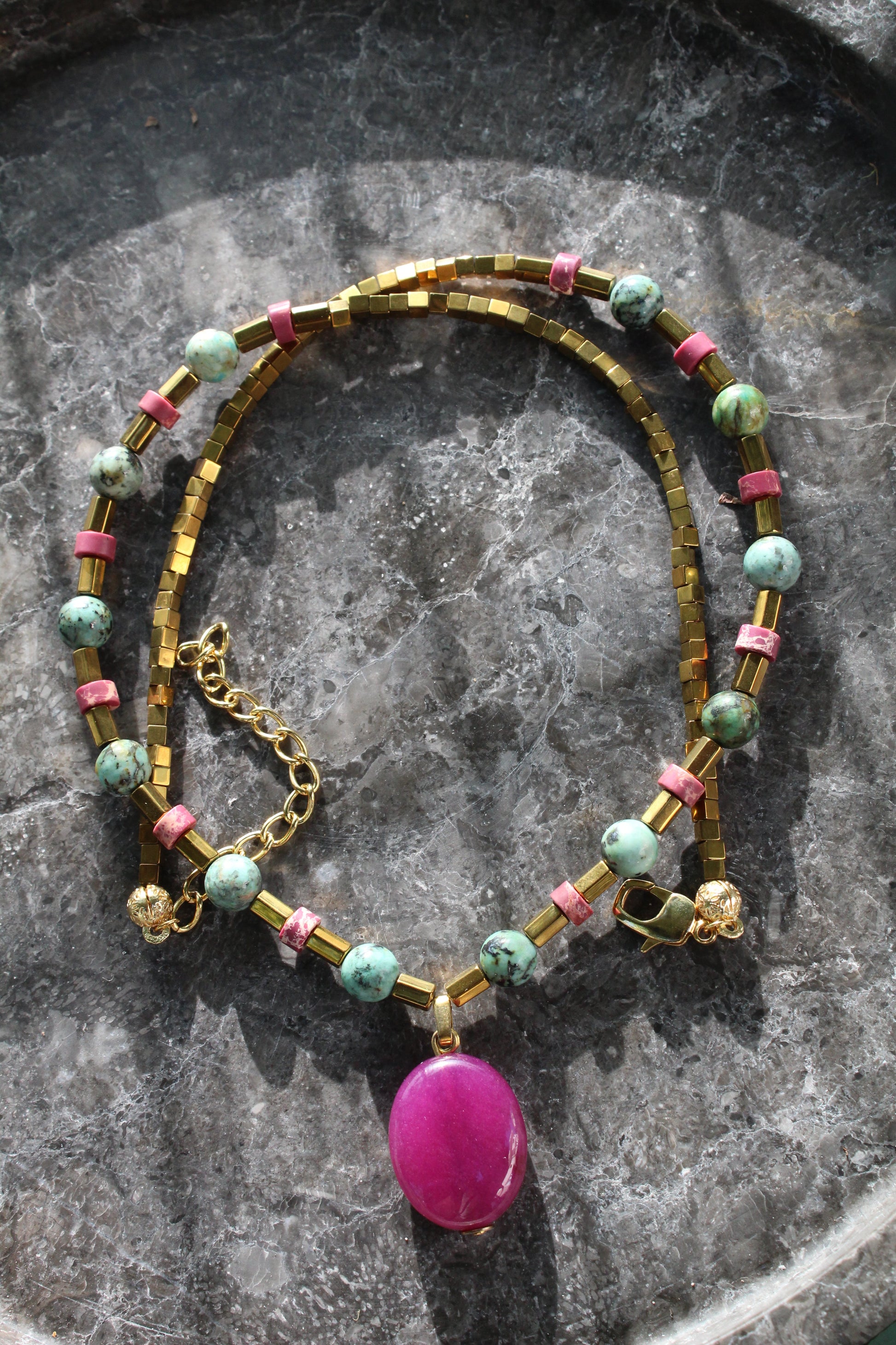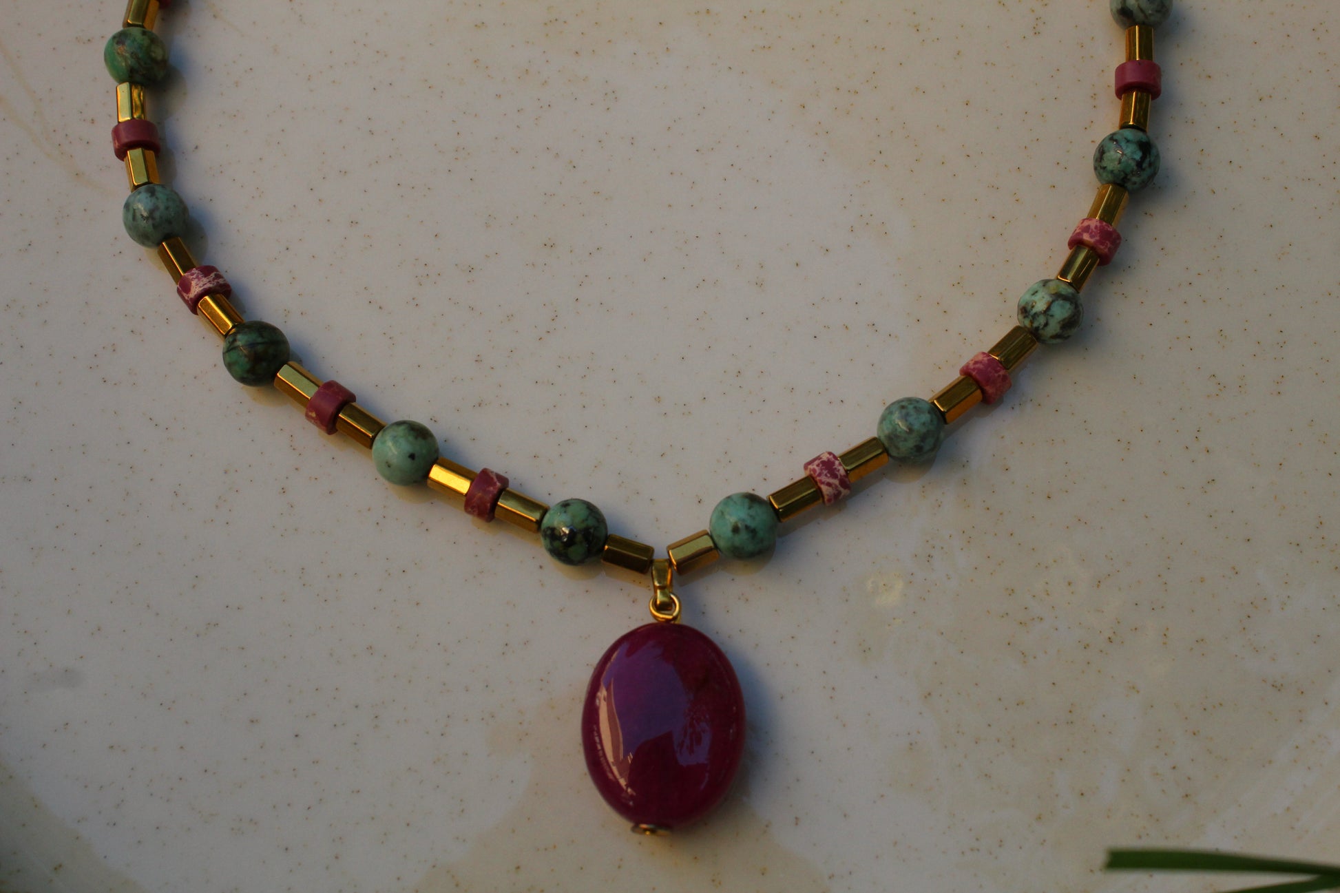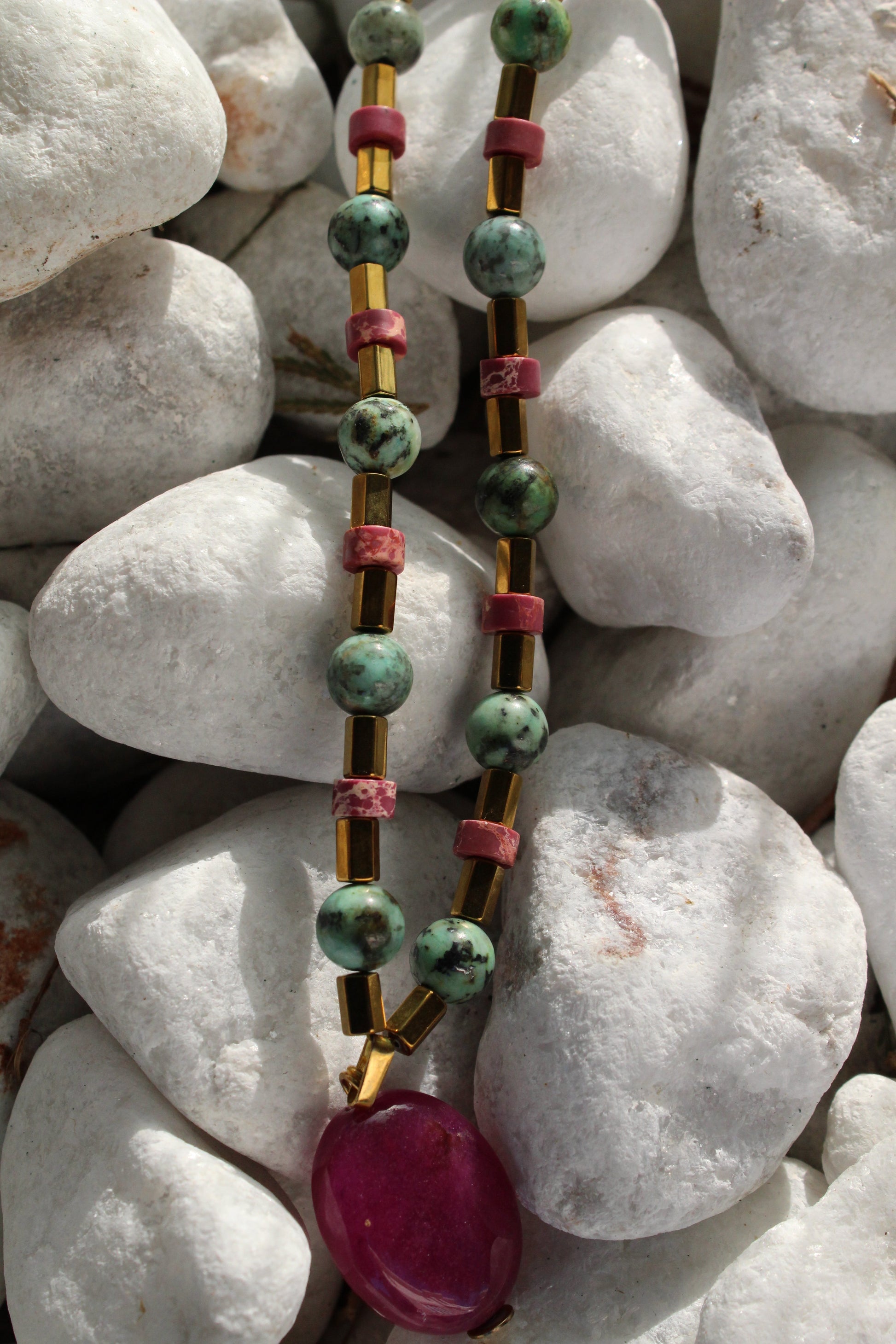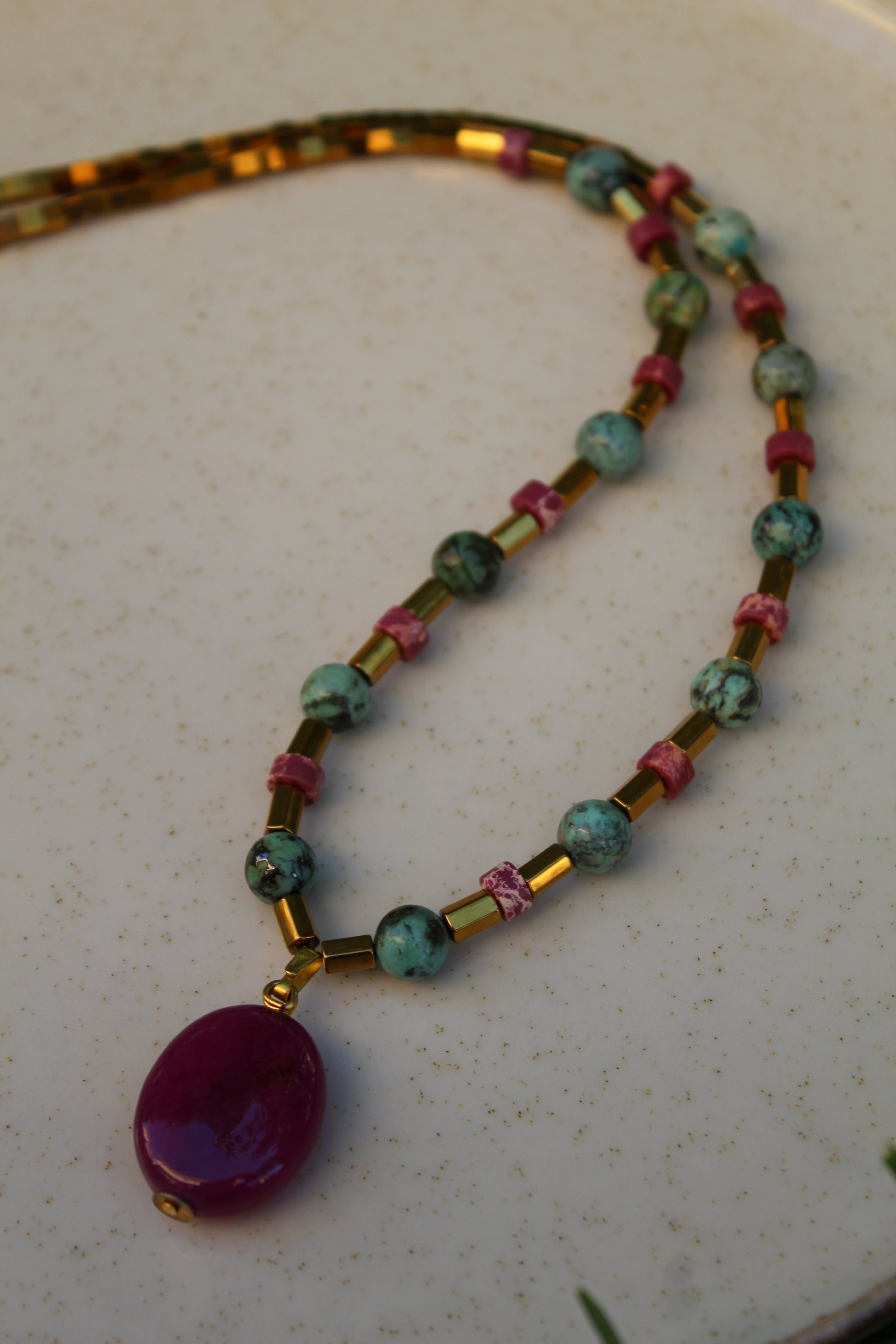 Malzemeler: Afrika Turkuazı , Varasit, Hematit Doğaltaş ve Kolye Ucu