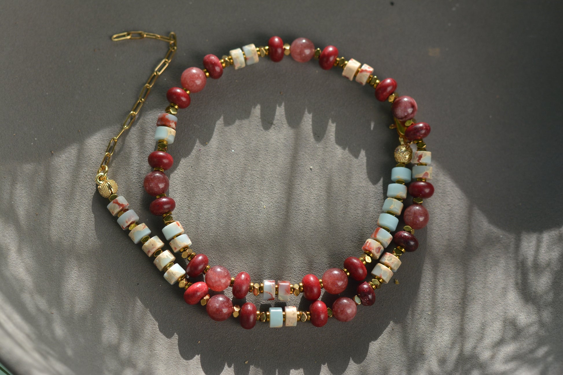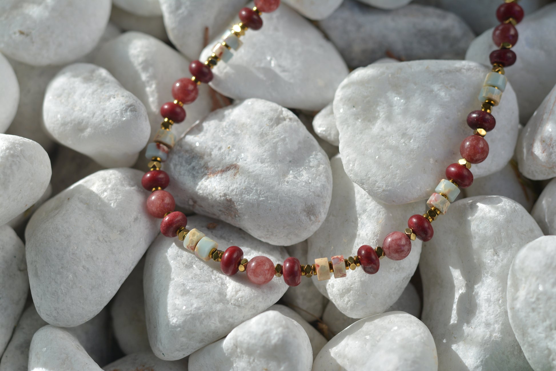 Doğal taşlar ve altın kaplama parçalar içeren koleksiyonlarımızın uzun ömürlü olması için, parfüm, krem ve alkol gibi kimyasallarla temasından kaçınılmasını öneririz. Bu tür maddeler, taşların doğal yapısını ve kaplamaların dayanıklılığını olumsuz etkileyebilir. Ürünlerinizi korumak için bu tür dış etkenlerden uzak tutmanız önemlidir.